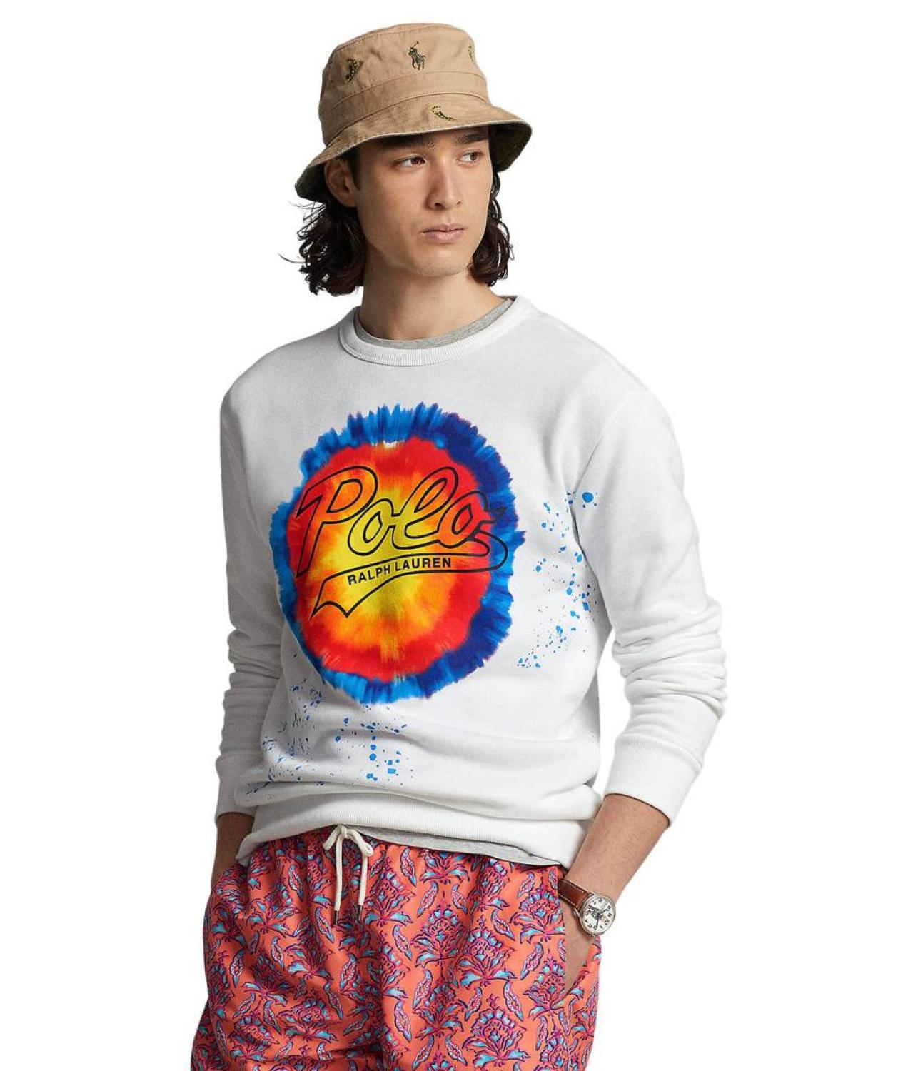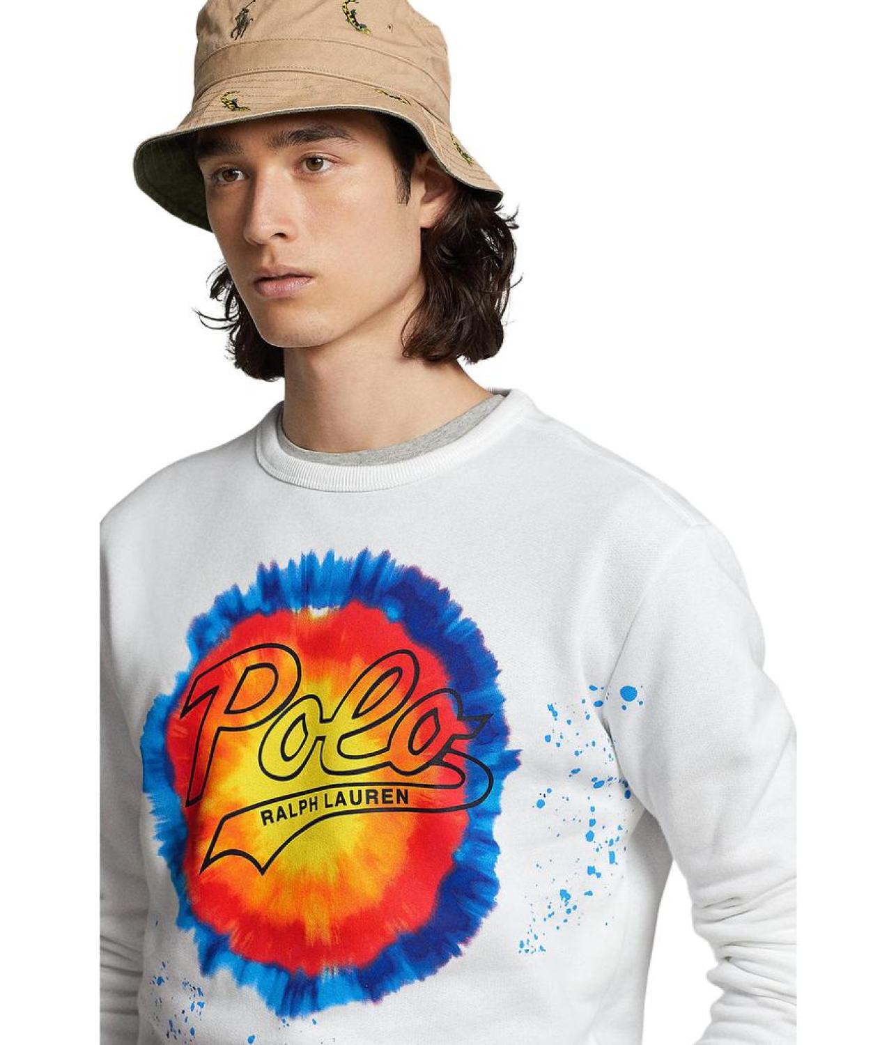 • The Polo Ralph Lauren® Logo Tie-Dye Print Fleece Sweatshirt features our logo printed with a tie-dye graphic and paint-splatter motif. ralph lauren partners With better cotton™ to improve cotton farming globally. Better cotton trains farmers to use water efficiently, care for the health of the soil and natural habitats, reduce use of the most harmful chemicals, and implement the principles of decent work.