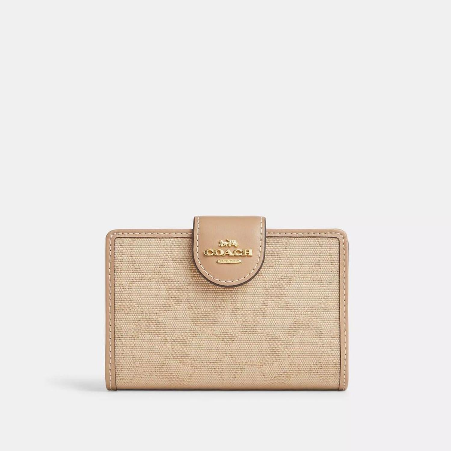 Signature canvas and smooth leather Seven credit card slots Bill compartment ID window Snap closure Zip coin pocket 5 (L) x 3 1/2 (H) x 1/2 (W) Exclusive of trim this piece is crafted of cotton sourced from farms that use regenerative agricultural practices—those that help to maintain and rejuvenate land increase biological diversity and soil health and could lead to increased carbon absorption Style No. CAO98 | Coach Outlet Medium Corner Zip Wallet With Signature Canvas - Multi