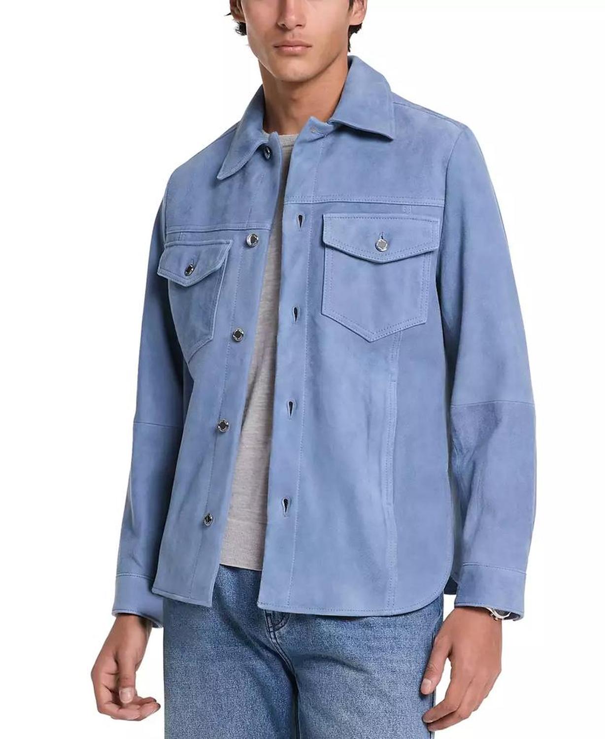 Men's Long Sleeve Button-Front Suede Shirt-Jacket