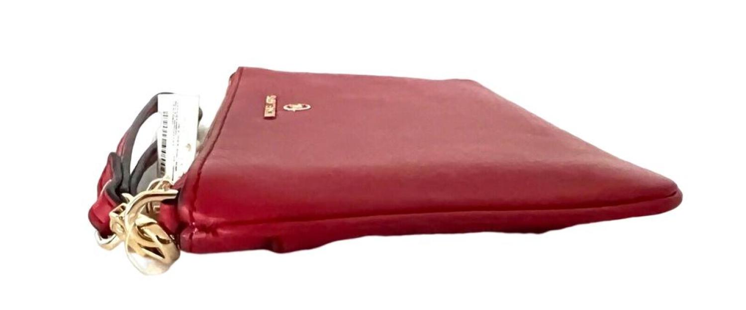 Made of pebble embossed leather, Small-sized wallet, Lining - Polyester, Zip closure, Interior - One back slip pocket, Two front slip pockets. Exterior - One back slip pocket, Gold-tone hardware, Approximately weight - 0.37 lbs. 100% cow leather, Wipe clean, Imported. Measurements - Length - 8.5 x Height - 5 x Width - 0.5 Inches. Comes with original tags.
