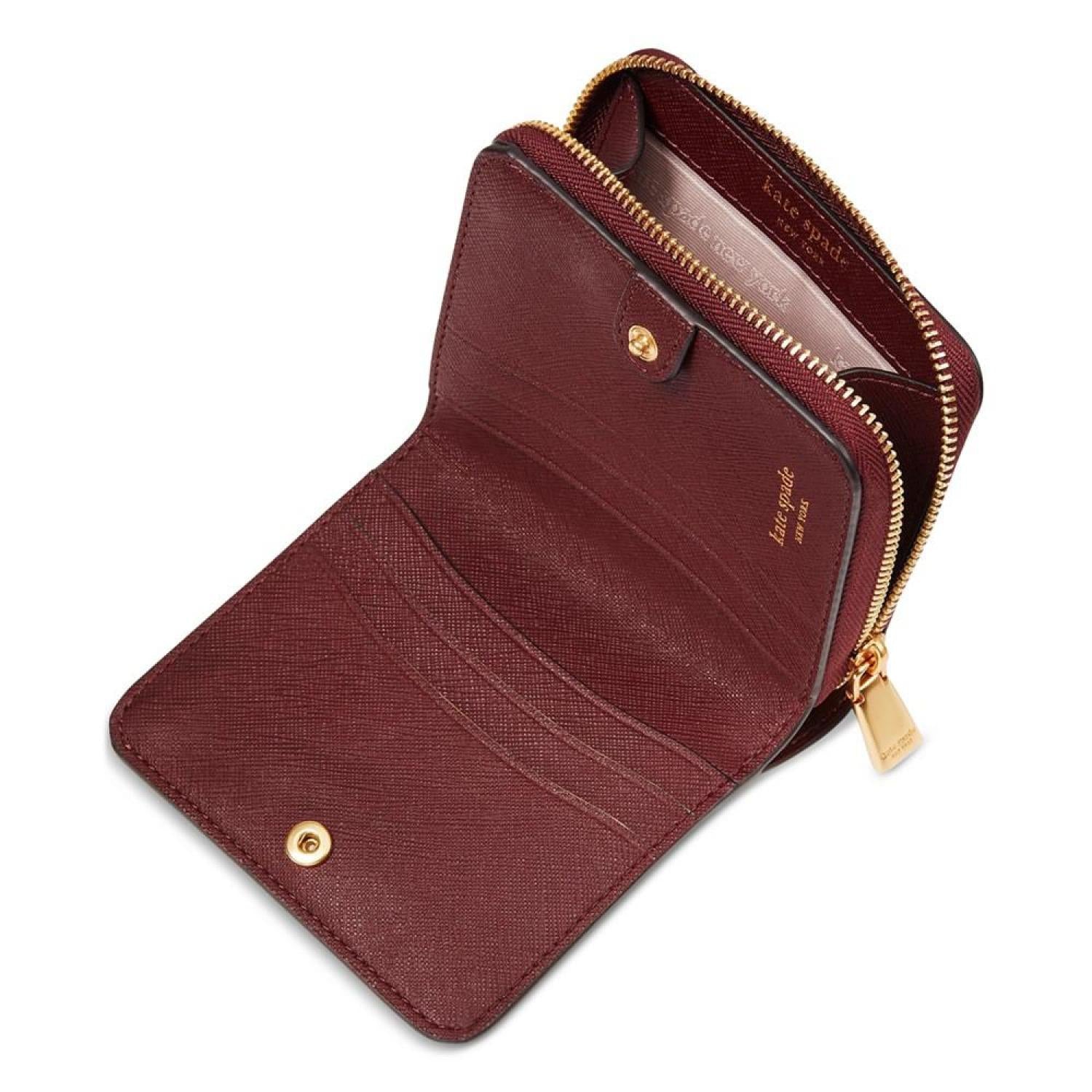 Perfect for the daily essentials, let this wallet by kate spade new york keep you organized. 10-1/5"W x 3-3/4"H x 1-2/5"D; 1.0 lbs. approx. weight Snap closure Gold-tone hardware 6 interior card slots, bill slip & zippered coin pouch Leather Spot clean Imported