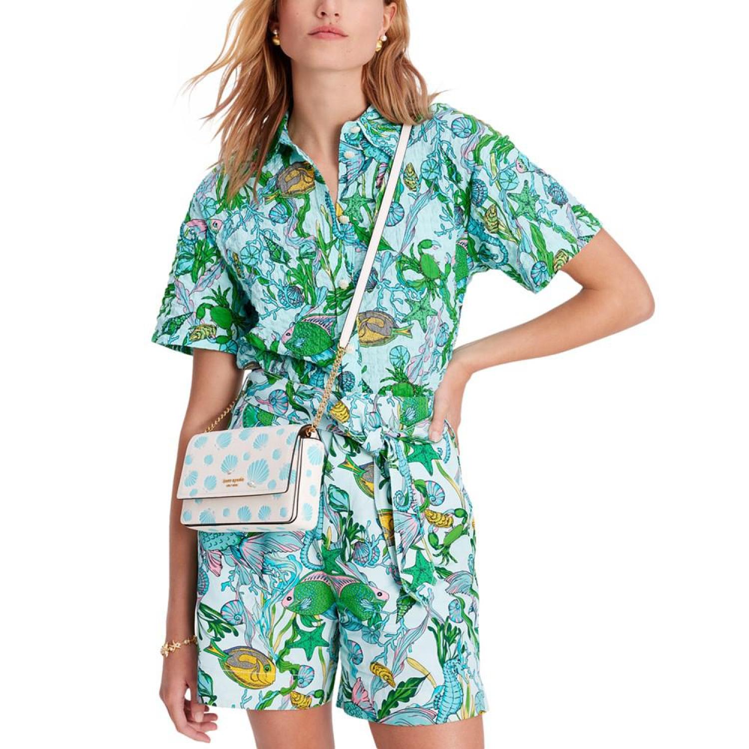 Sophisticate your seaside style with the Morgan Seashell Embossed Saffiano Leather Flap Chain Wallet by kate spade new york.