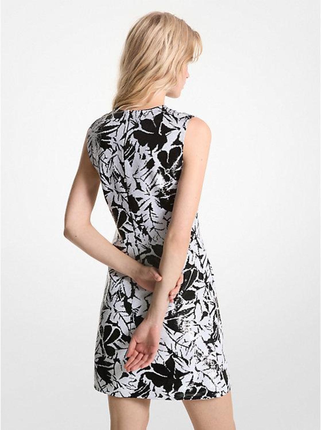 • This dress is proof that sequins are no longer reserved for evenings and holiday parties. Defined by the season’s allover palm motif, this glistening mini is fully lined and features a zip fastening for ease of wear. Style it with the season’s neoprene Colby and sleek sneakers for a modern mix of textures.