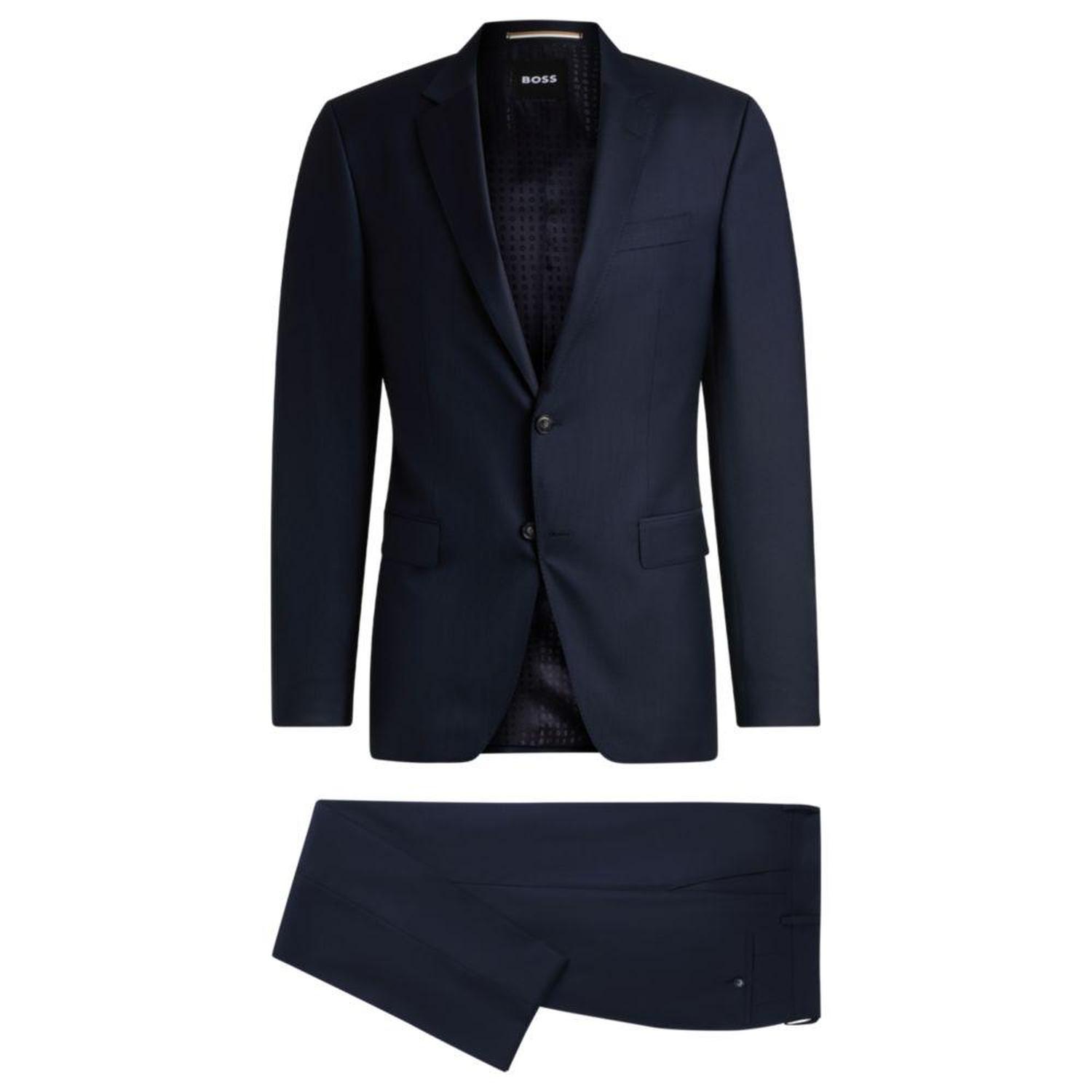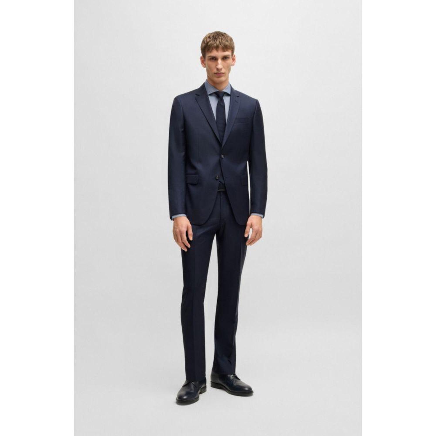 A distinctive suit by BOSS. Featuring signature lining, this two-piece suit is tailored to a streamlined fit in wool blended with silk for an elegant look. The fabric is woven with a modern pattern.