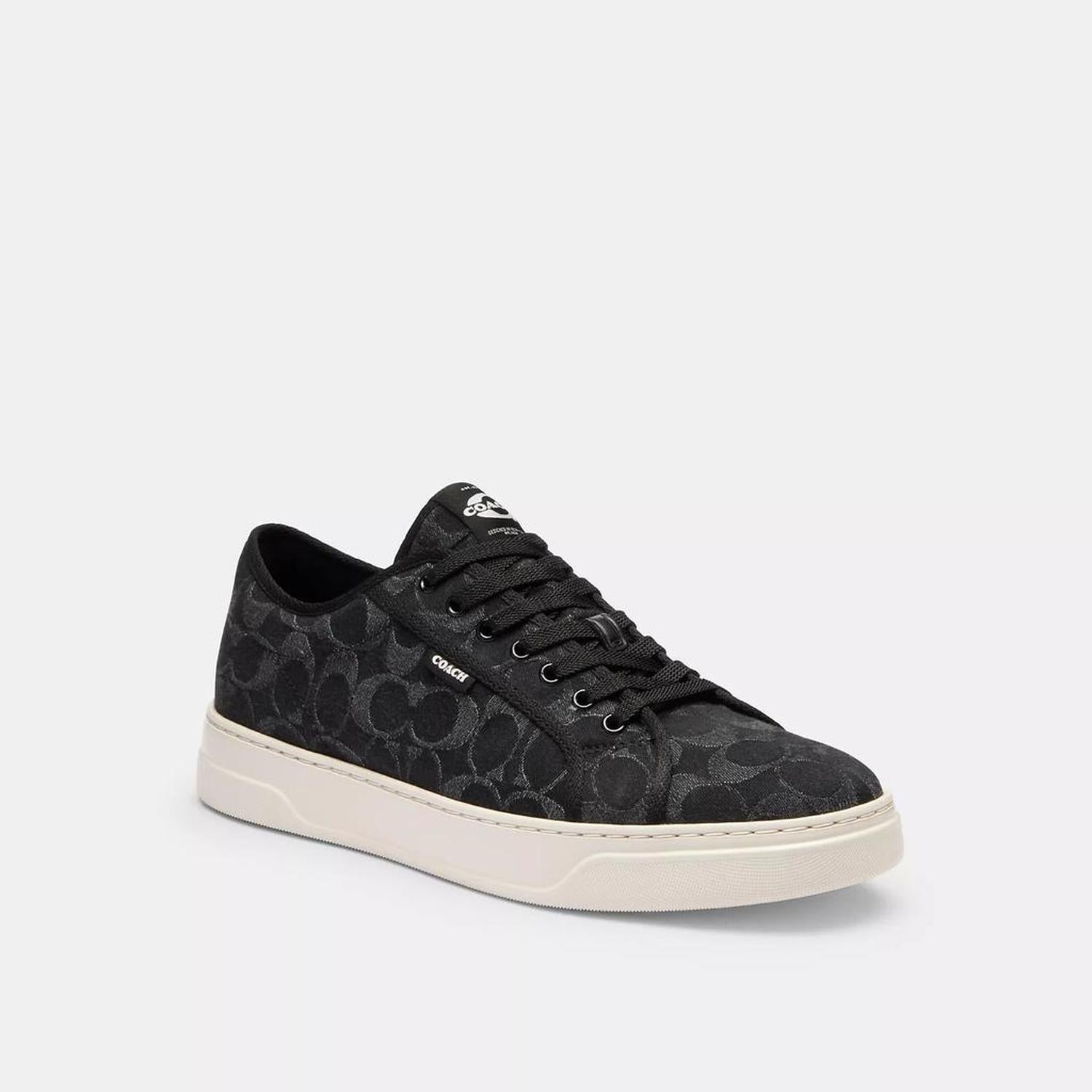 • Signature denim upper Fabric lining and footbed EVA outsole Lace-up closure Style No. CAP73 | Coach Outlet Sneaker In Signature Denim - Black, Size - 8.5