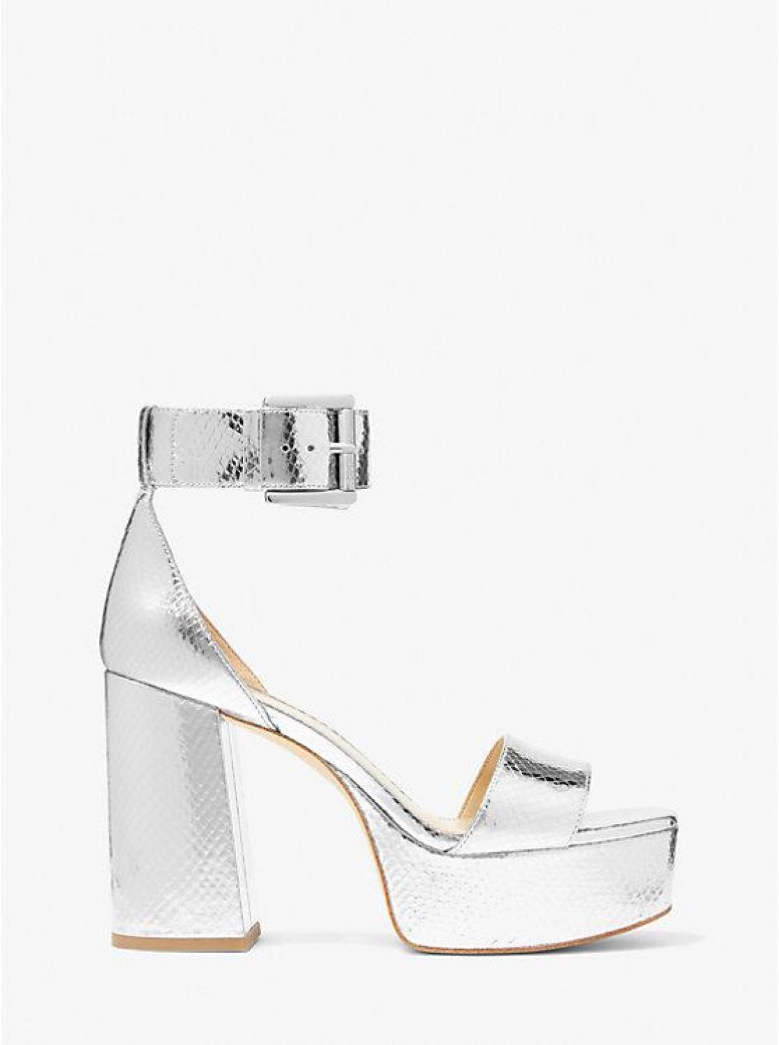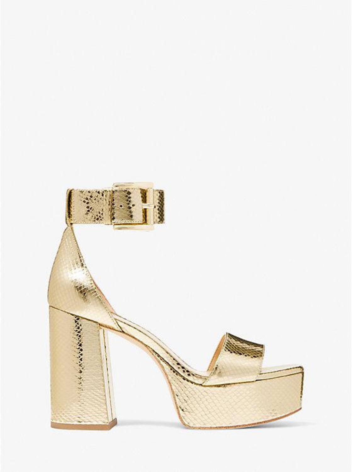 Tara Metallic Snake Embossed Leather Platform Sandal