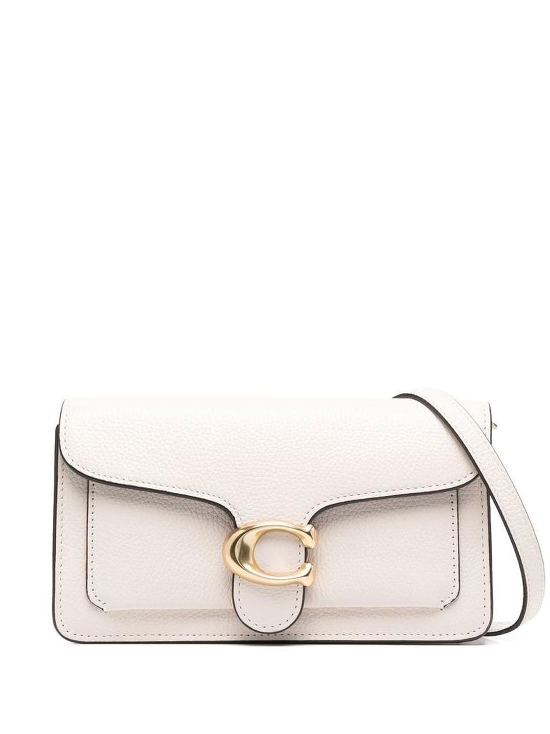 Shiny pebbled leather, eight credit card slots, internal zip and open pockets, snap closure, fabric lining, external open pocket and detachable chain shoulder strap. tabby chain Tabby chain leather clutch Width 8,27 in / 21 cm Height 4,53 in / 11,5 cm Depth 1,97 in / 5 cm Strap 47,24 in / 120 cm Size -