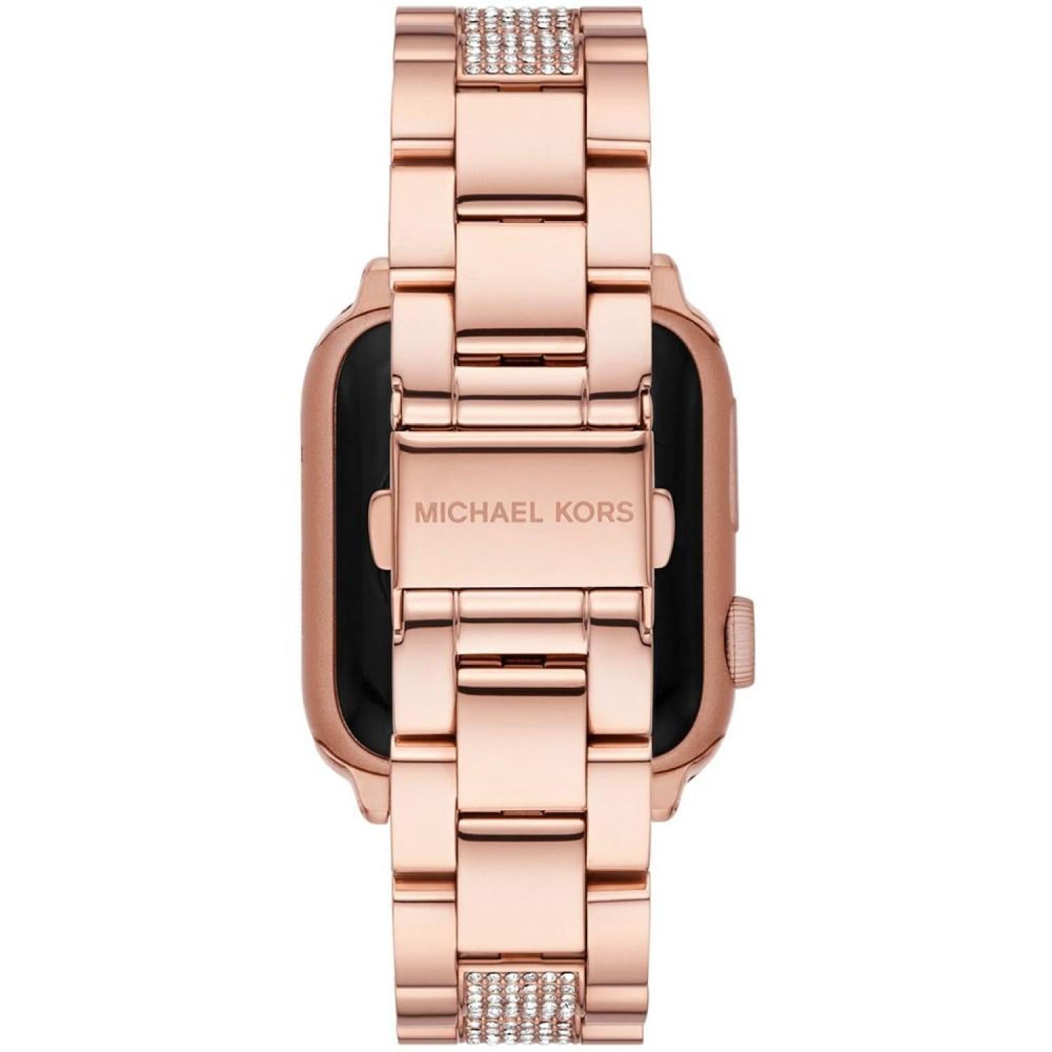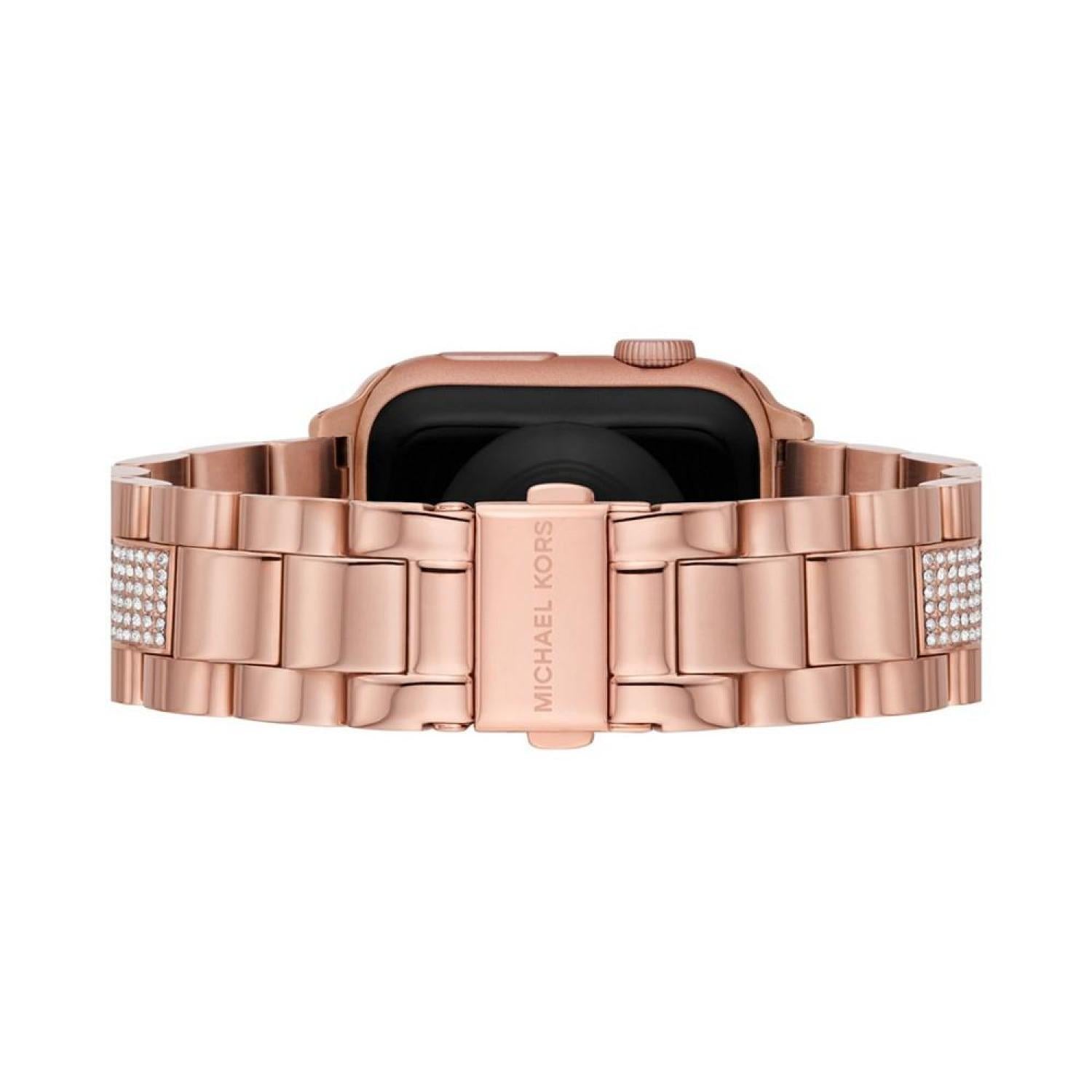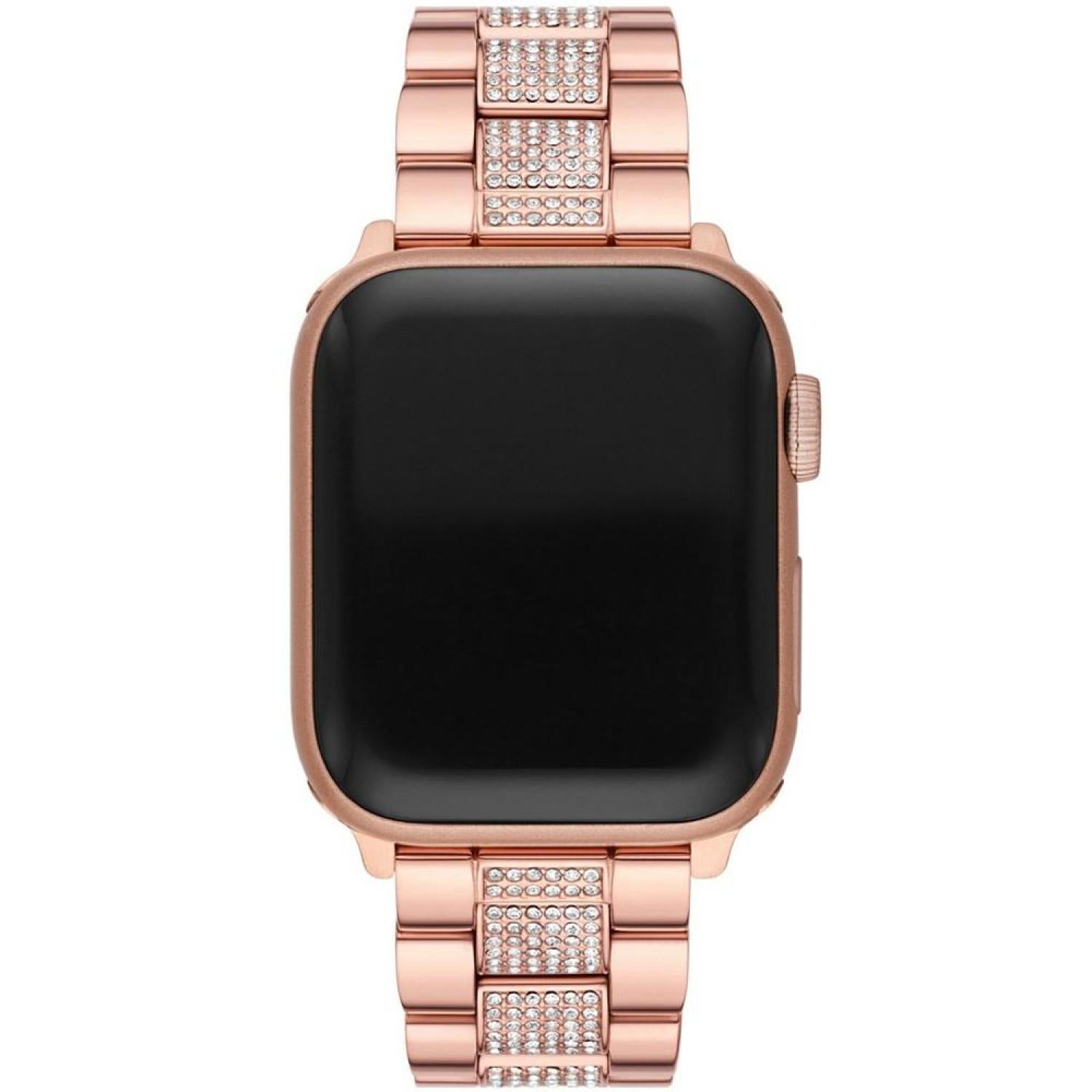 Michael Kors' interchangeable strap set features glitz centerlinks that fits both 38mm and 40mm styles. Style #MKS8028SET. Set includes- 2 Apple Watch bands Strap- rose gold-tone stainless steel bracelet and blush rubber strap with two pusher foldover clasp closure Strap comes in a gift box Compatible with: Series 1, 2, 3, 4, 5, 6 or 7 Apple Watch® Custom fit for your 38/40/41mm Apple Watch® This item purchased online must be returned to the vendor by mail only. This item cannot be returned to Macy's stores. Stainless Steel Wipe Clean Imported