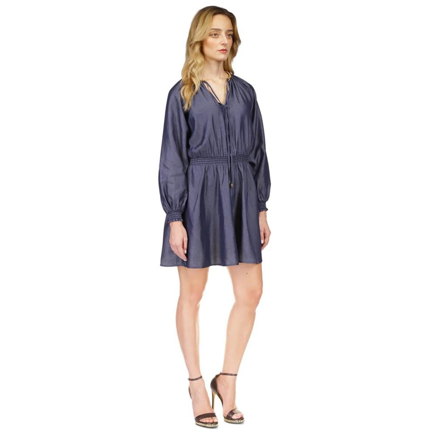 Add a touch of feminine flair to your wardrobe with MICHAEL Michael Kors' smocked-waist, tie-neck dress. The chain-embellished neckline adds a touch of class.