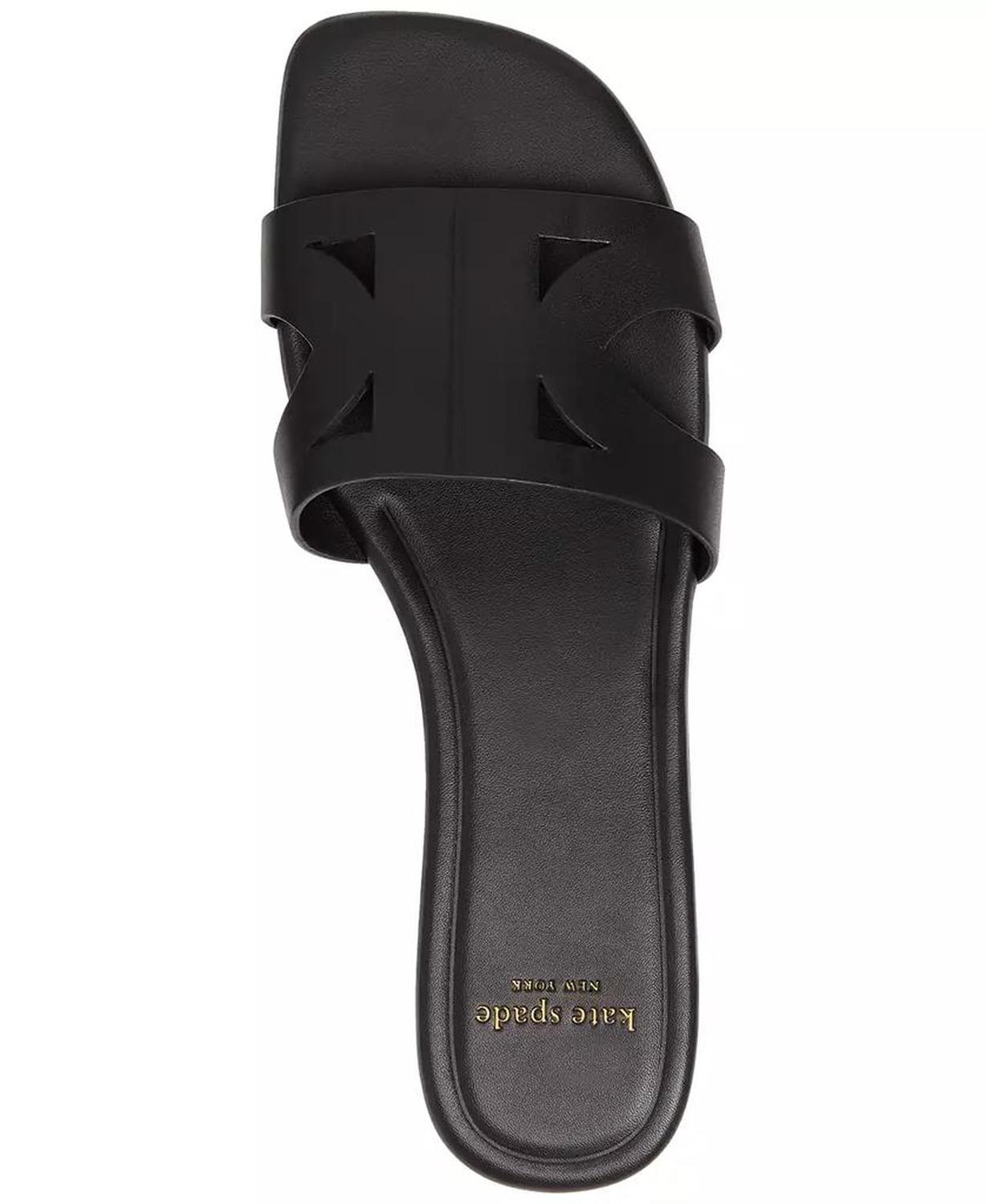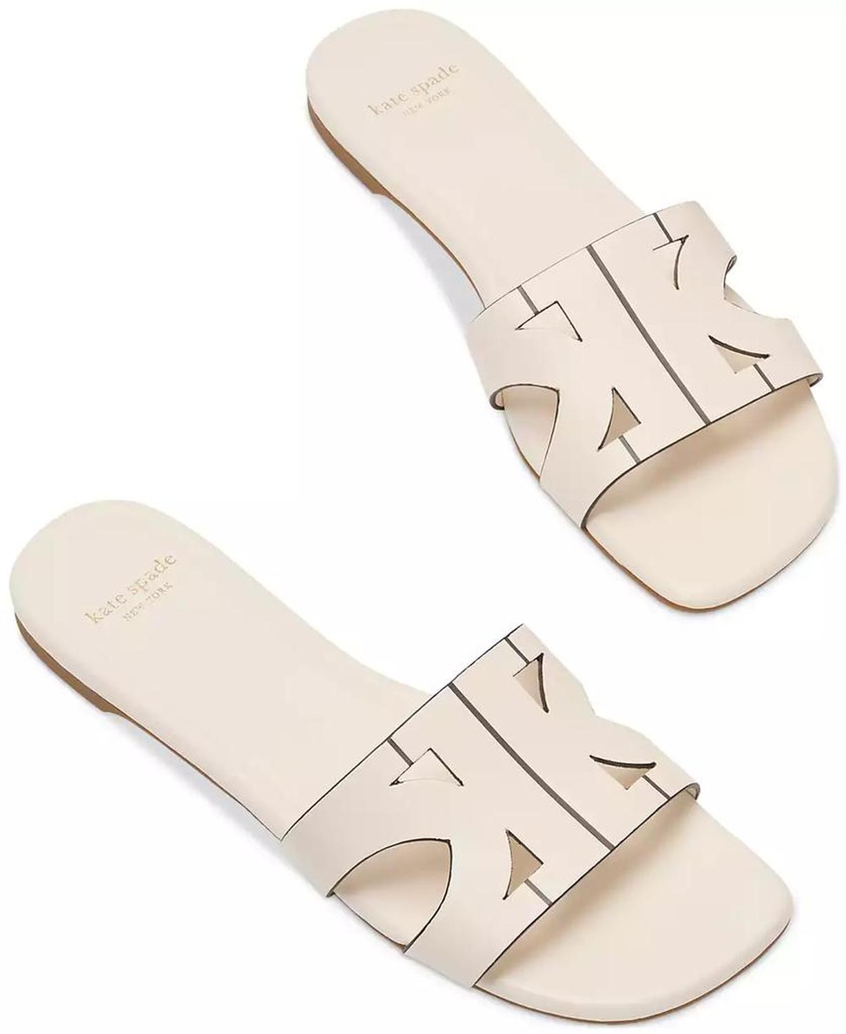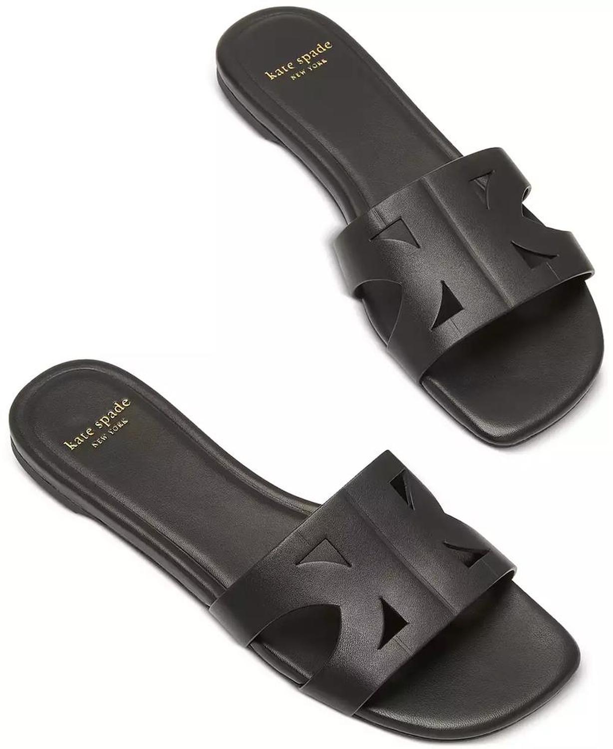 Sophisticated slip on style pairs with everything from denim to linen in the Kate Spade New York Duo sandals. Heel: 1/4" Open toe Slip on Upper: leather; lining: leather; sole: rubber Imported