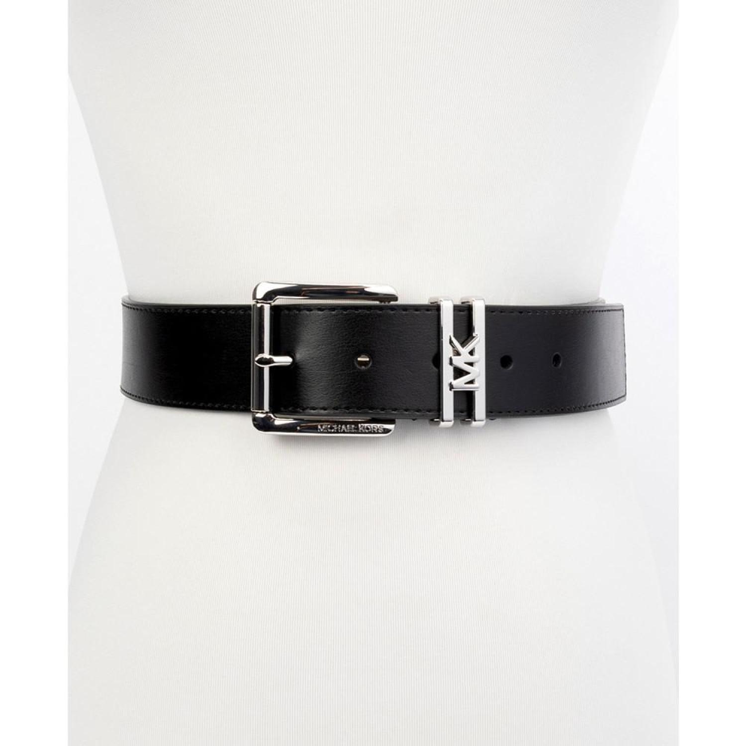 Add the perfect chic polishing touch to your look with this leather belt from Michael Kors featuring gleaming hardware. Approximate length: XS- 28", S- 31", M- 34", L- 37", XL- 40", XXL- 43", 1X- 46", 2X- 49" and approximate width: 0.5"-1" Logo-embellished buckle, metal logo keeper A medium sized belt at 38 mm Smooth solid leather belt A simple logoed rectangular belt buckle This item purchased online must be returned to the vendor by mail only. This item cannot be returned to Macy's stores. Leather Spot Clean Imported