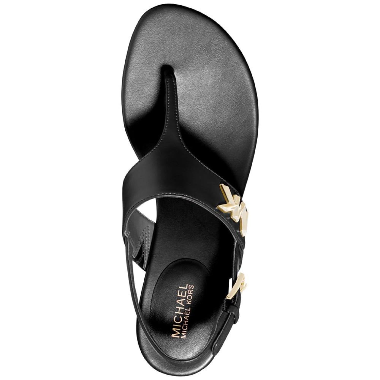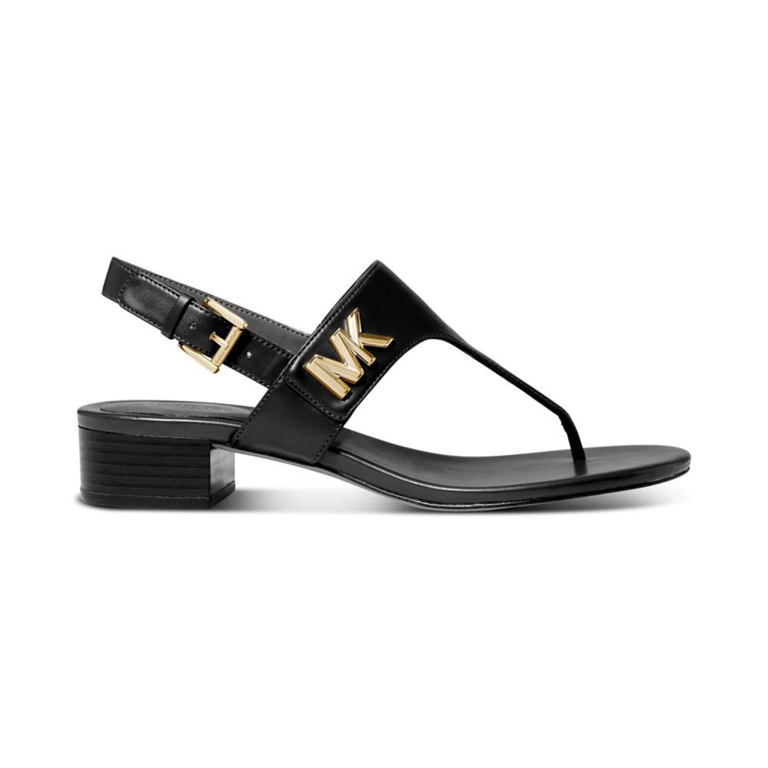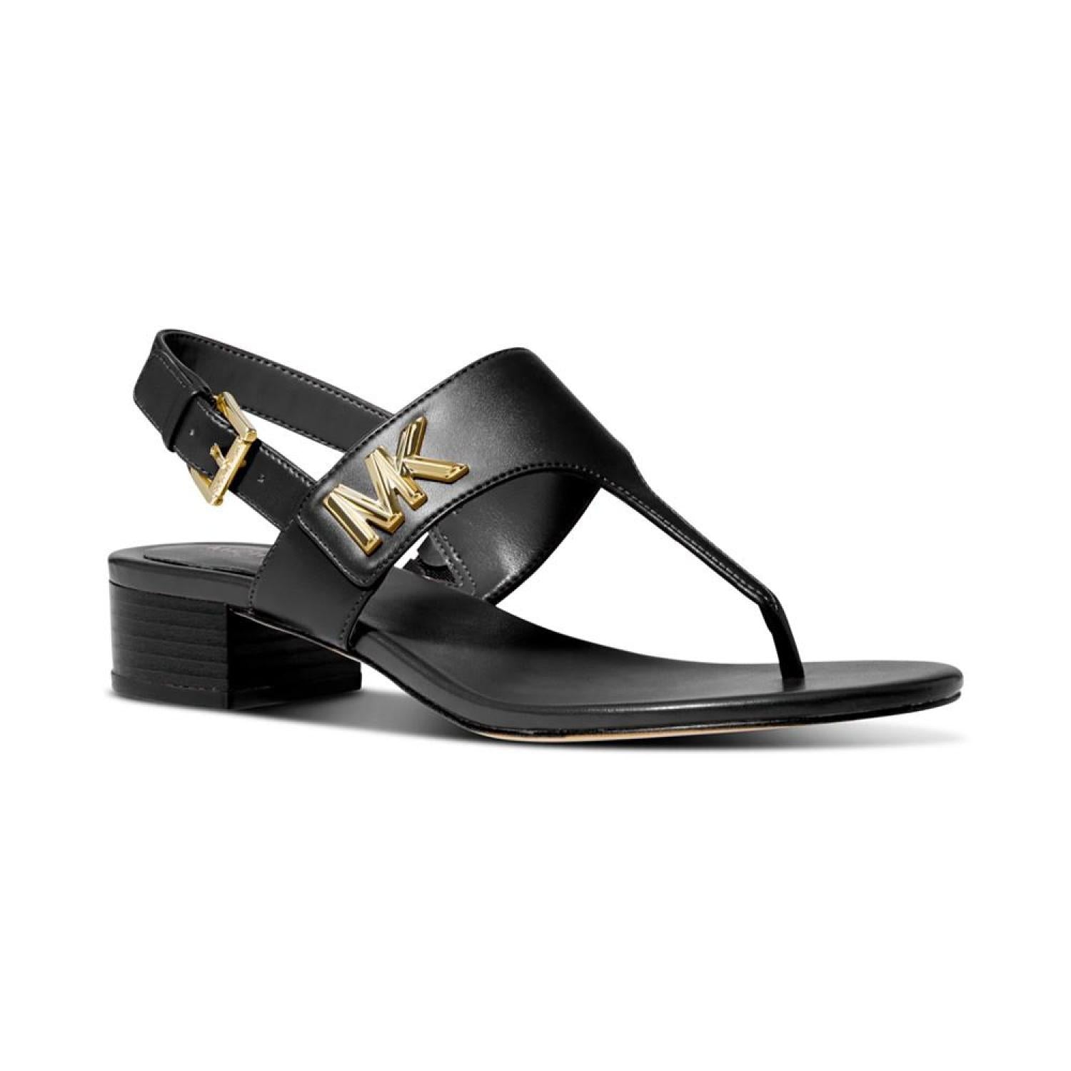 T-straps and slingbacks top a sturdy stacked heel making the Jilly sandals from Michael Michael Kors a look to love whether dressed up or down. 1" heel Round-toe T-strap slingback sandals with adjustable buckle closure Manmade upper; manmade lining; rubber sole Imported
