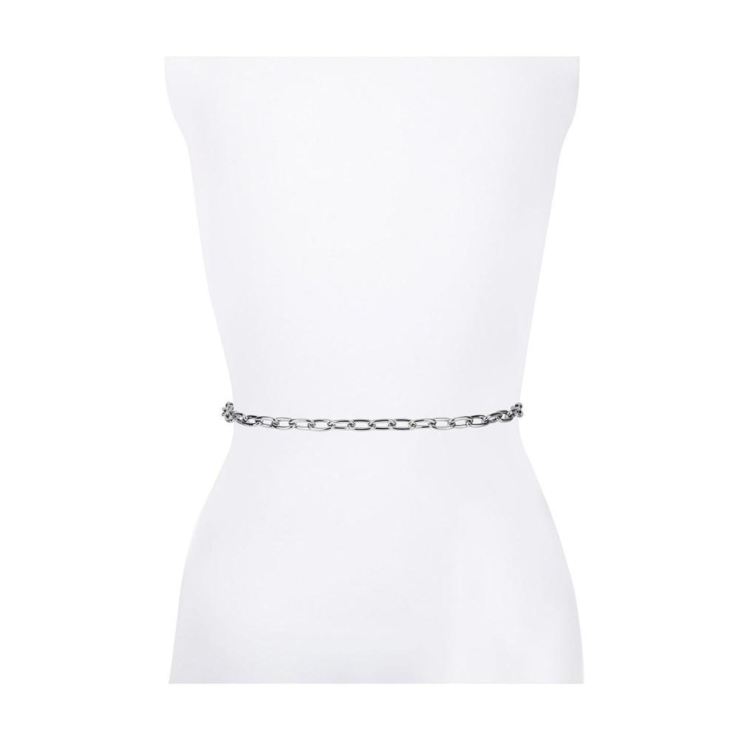With its polished chain-link design, this belt is a modern, edgy take on a classic design. Polished silver-tone Oval chain Clasp This item purchased online must be returned to the vendor by mail only. This item cannot be returned to Macy's stores. Metal Chain Spot Clean Imported