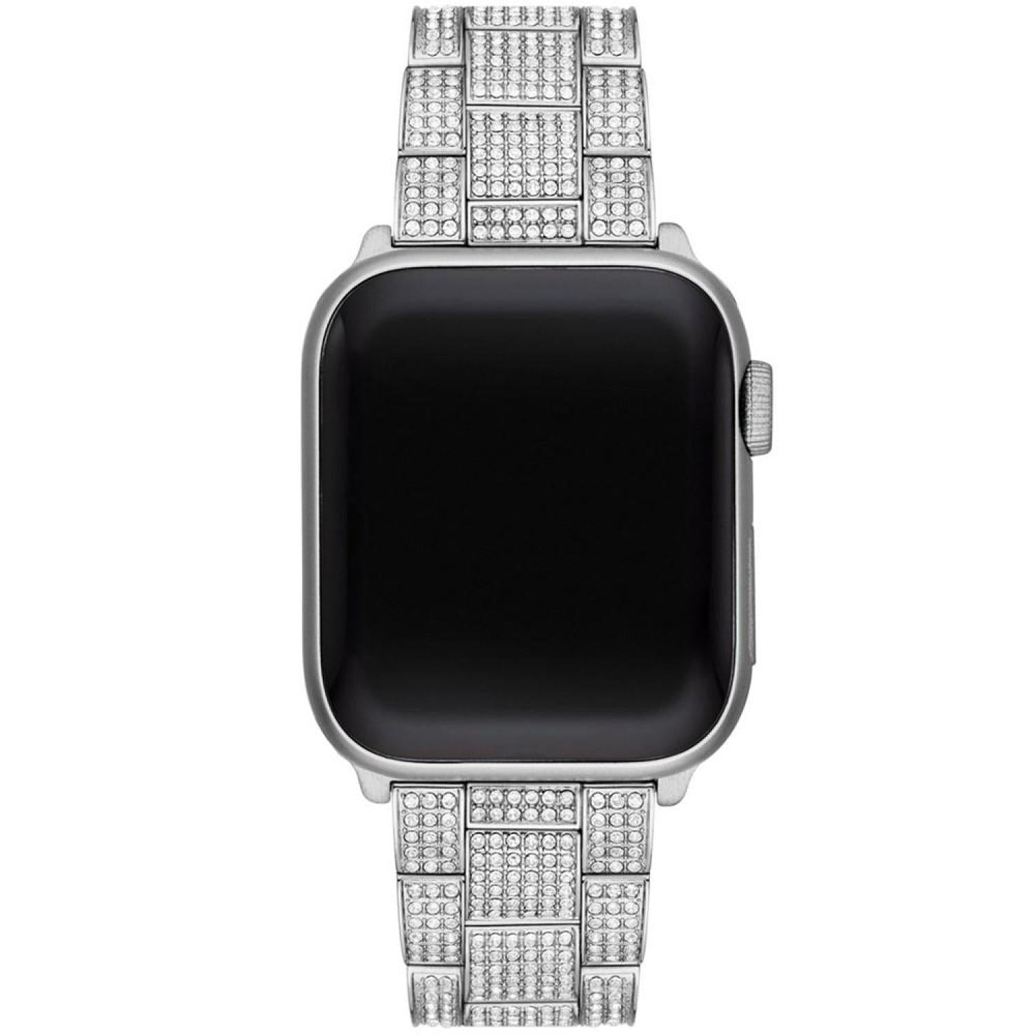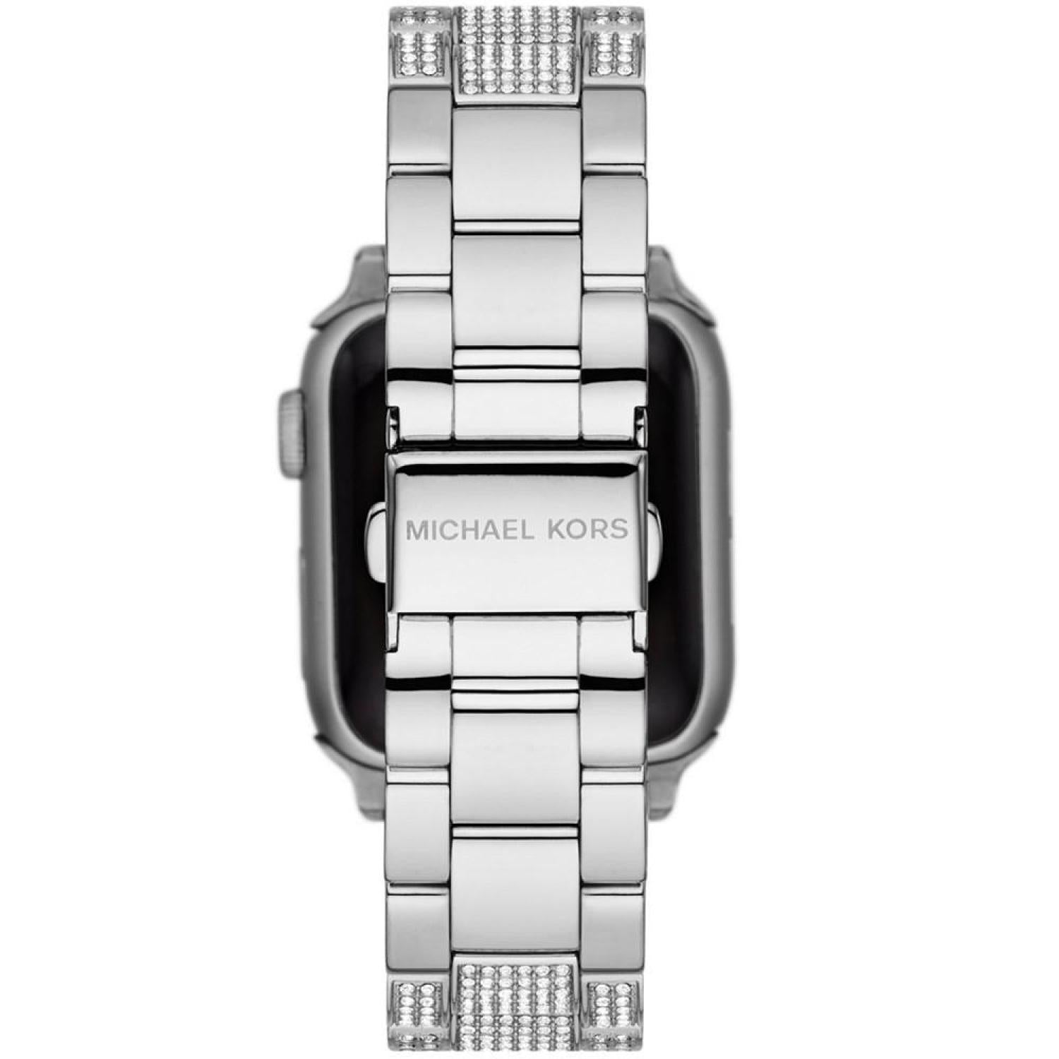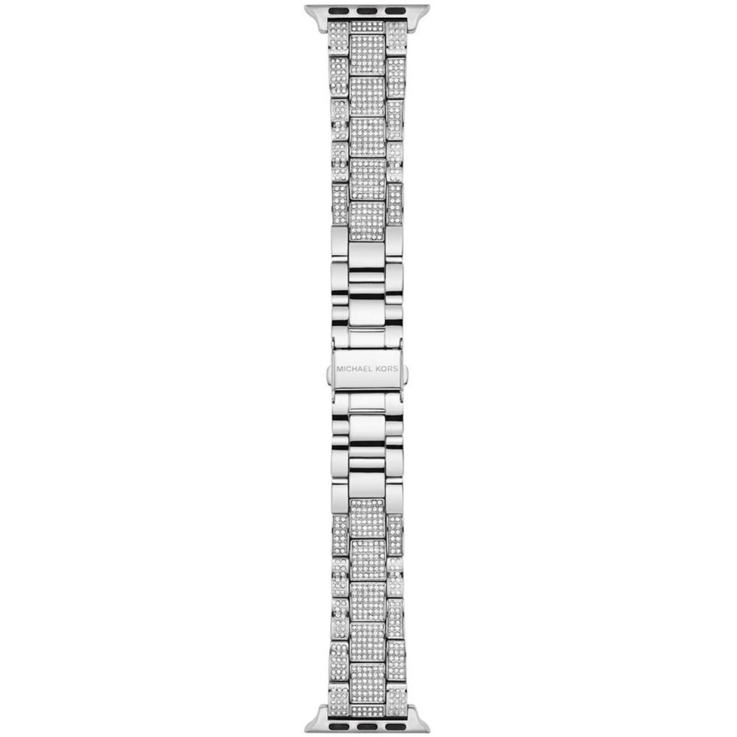 • Michael Kors silver-tone stainless steel bracelet band will add an extra special touch to your Apple Watch. Detailed with a silver-tone pave-detailed center links, fits both 38mm and 40mm styles. Style #MKS8006