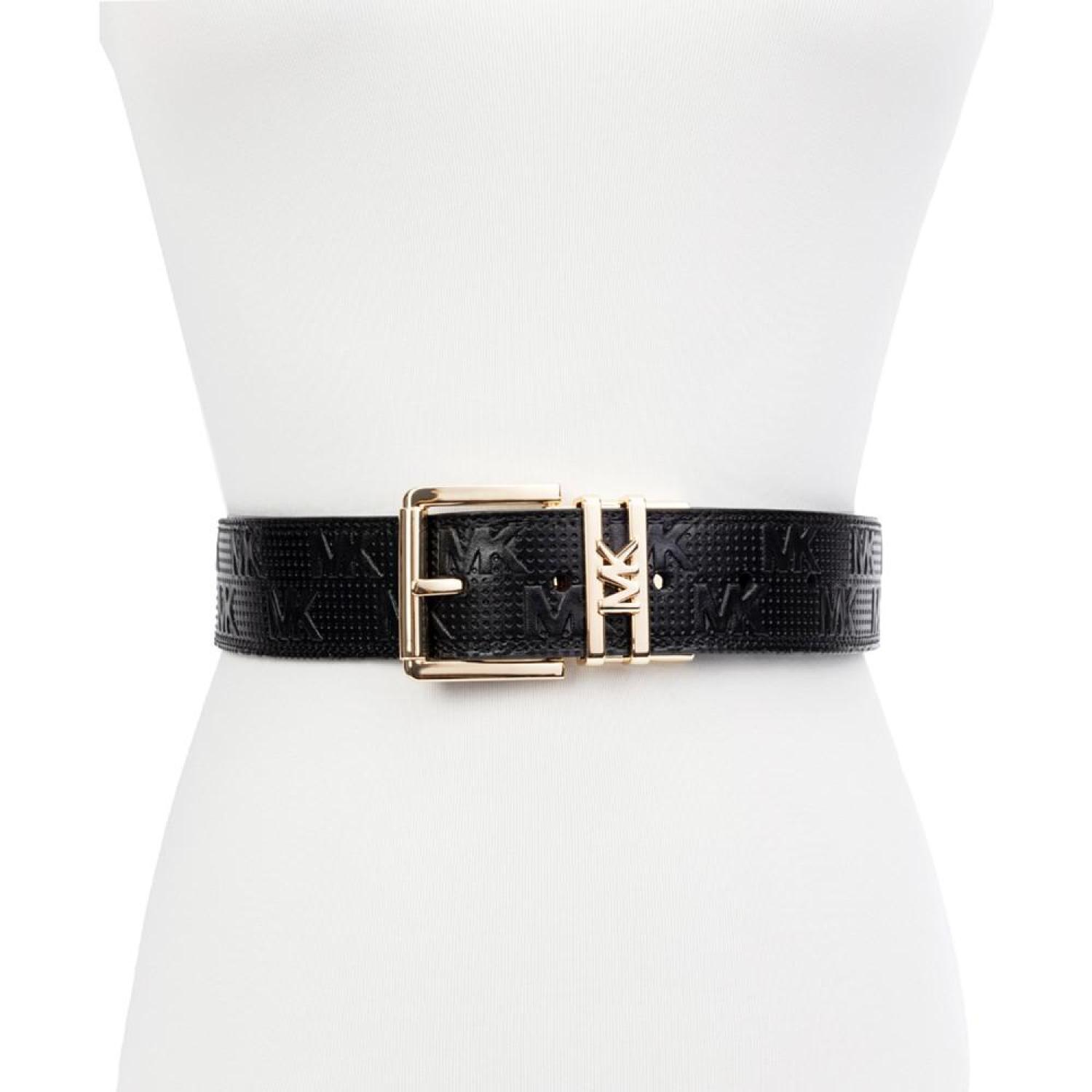• Today's brown mood is tomorrow's black. Add the perfect polishing touch to your look with this reversible leather belt from MICHAEL Michael Kors featuring gleaming hardware.