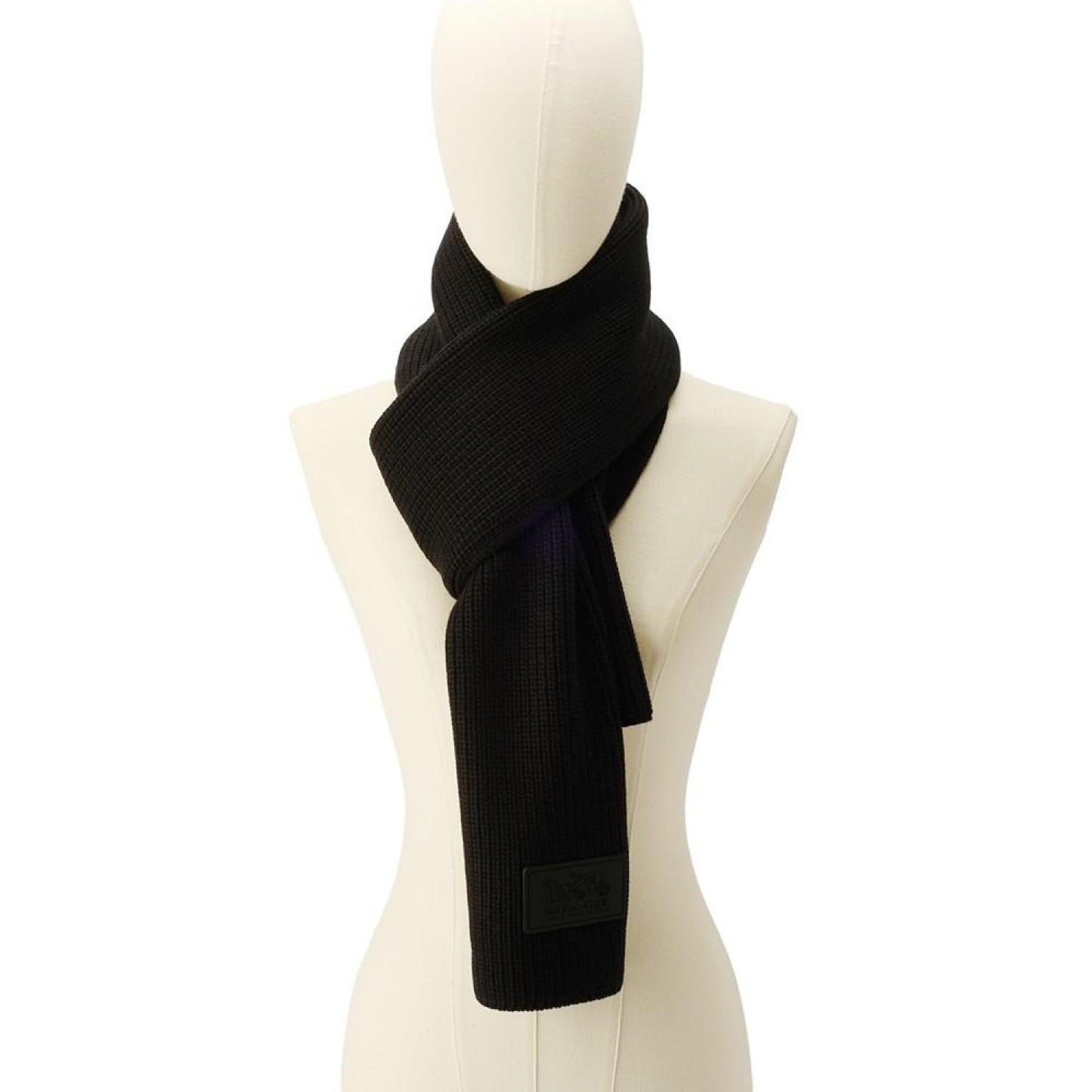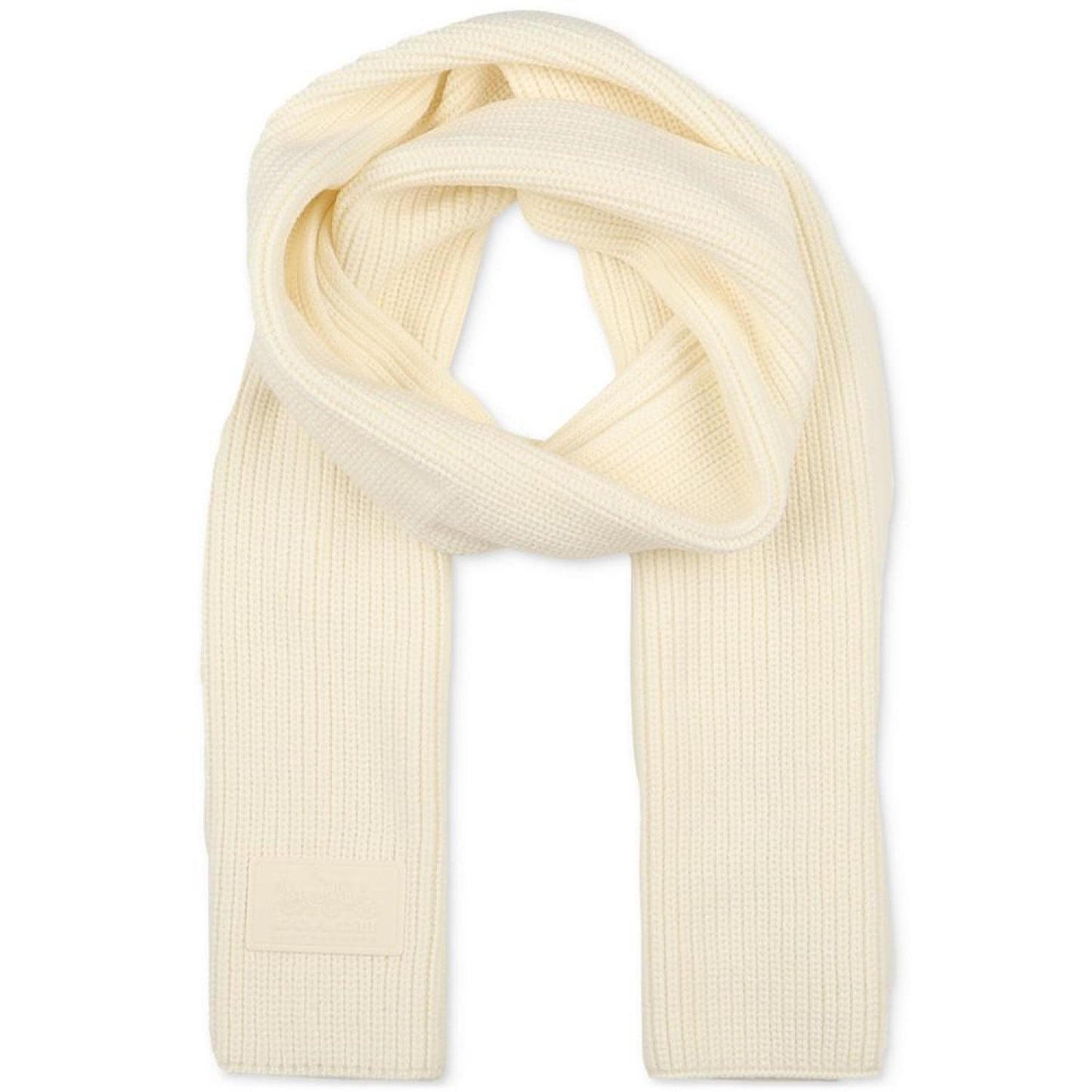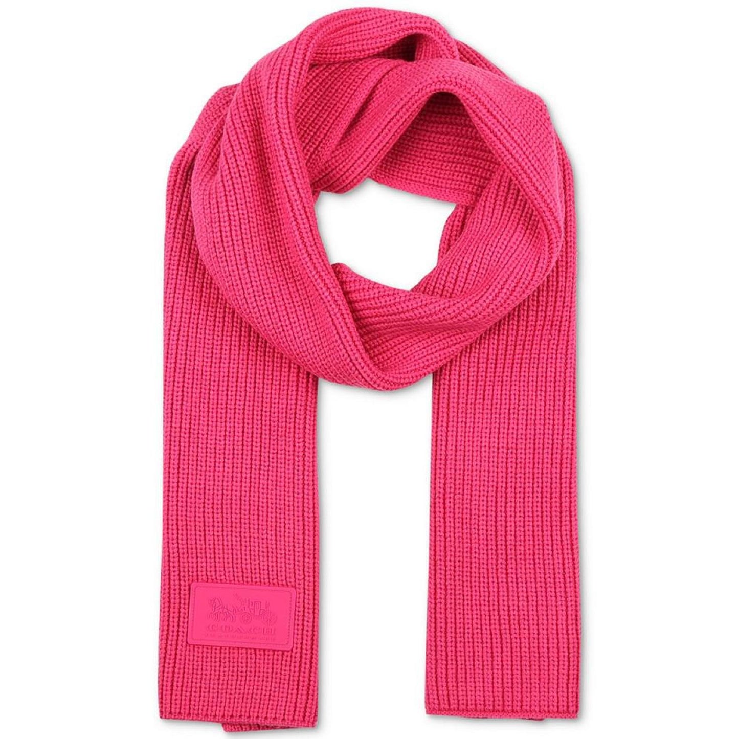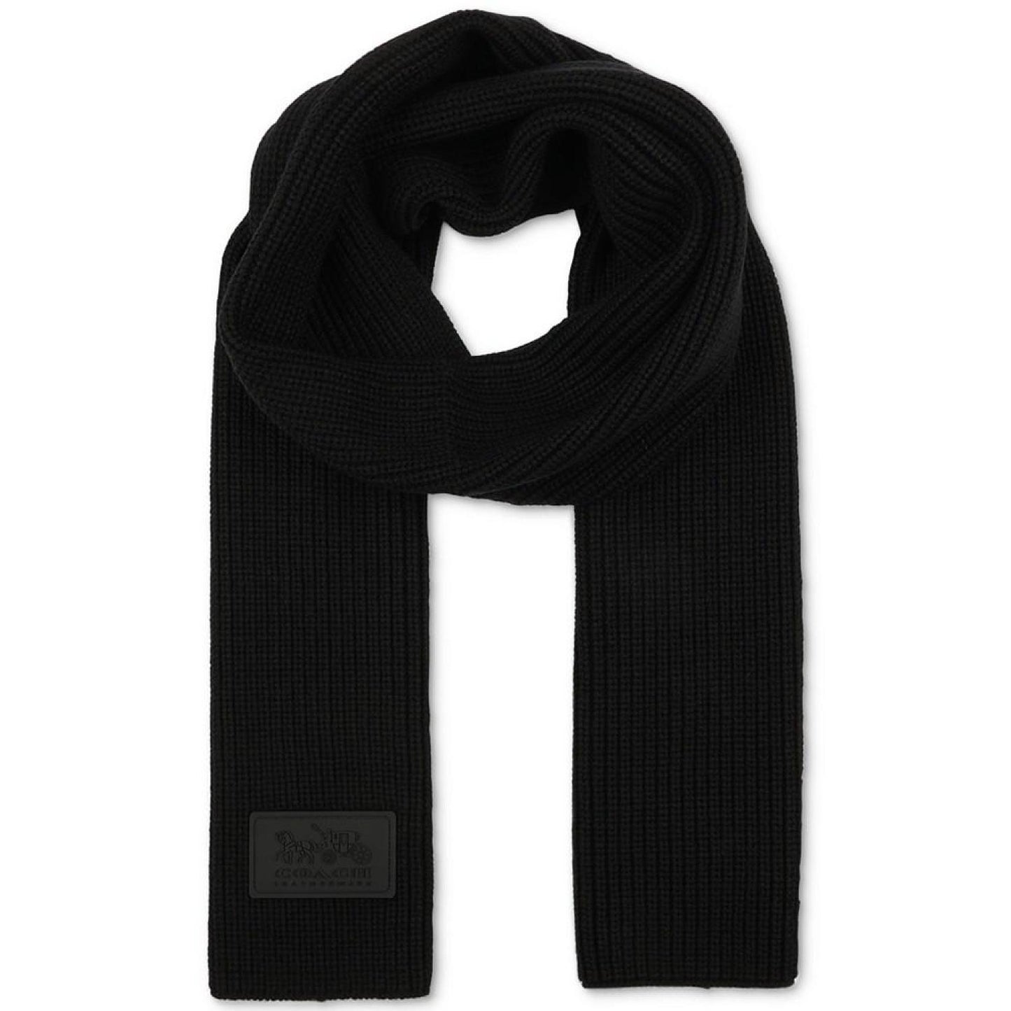 Detailed with a rubber logo patch, this sporty scarf from COACH is perfect for cooler weather in a soft, cozy ribbed knit. Dimensions: 72"L x 10"W Rubber logo patch Acrylic, wool Machine wash Imported