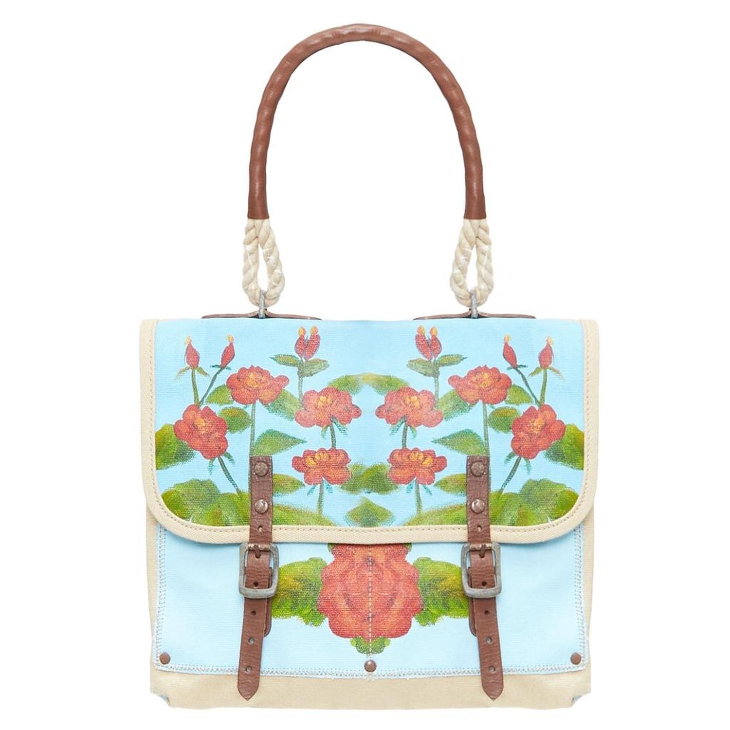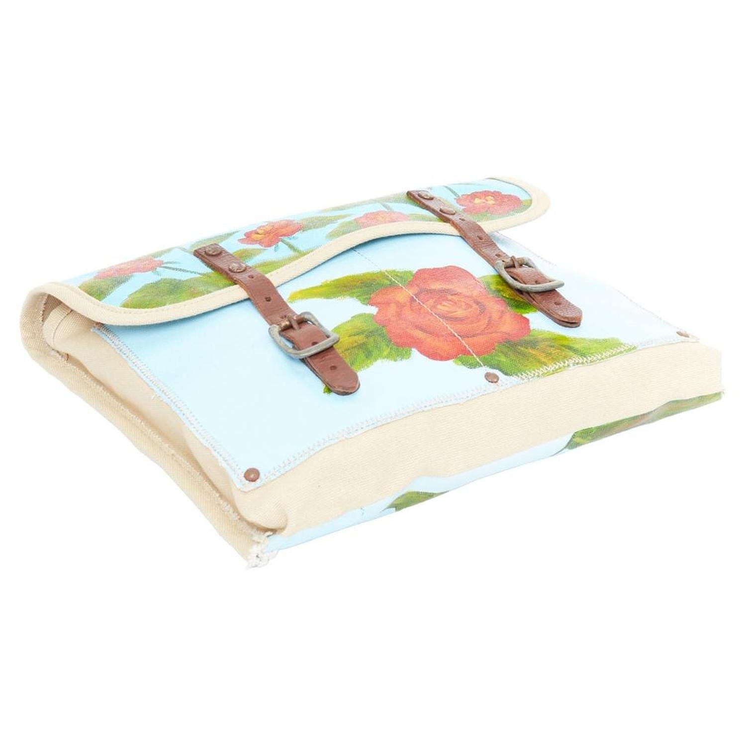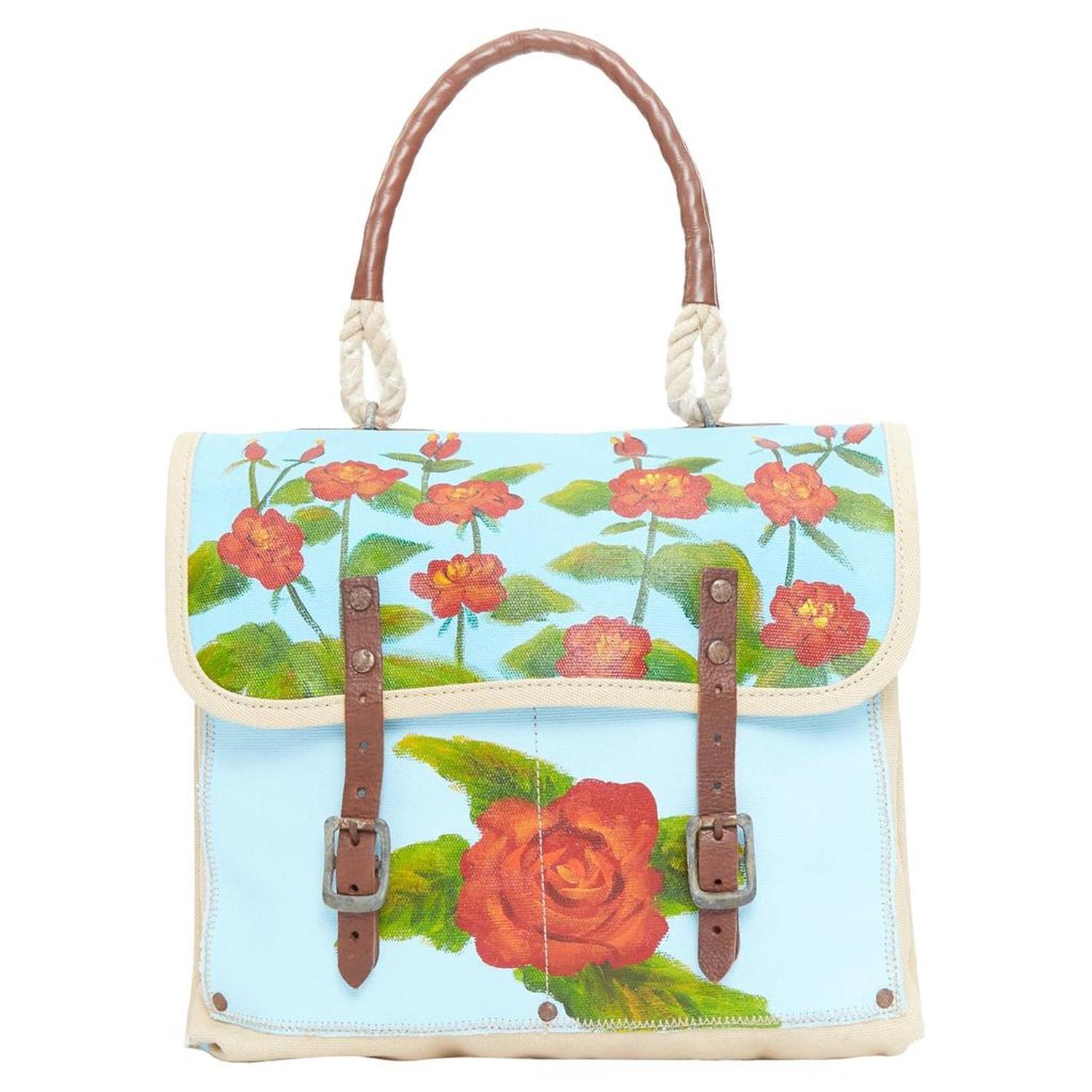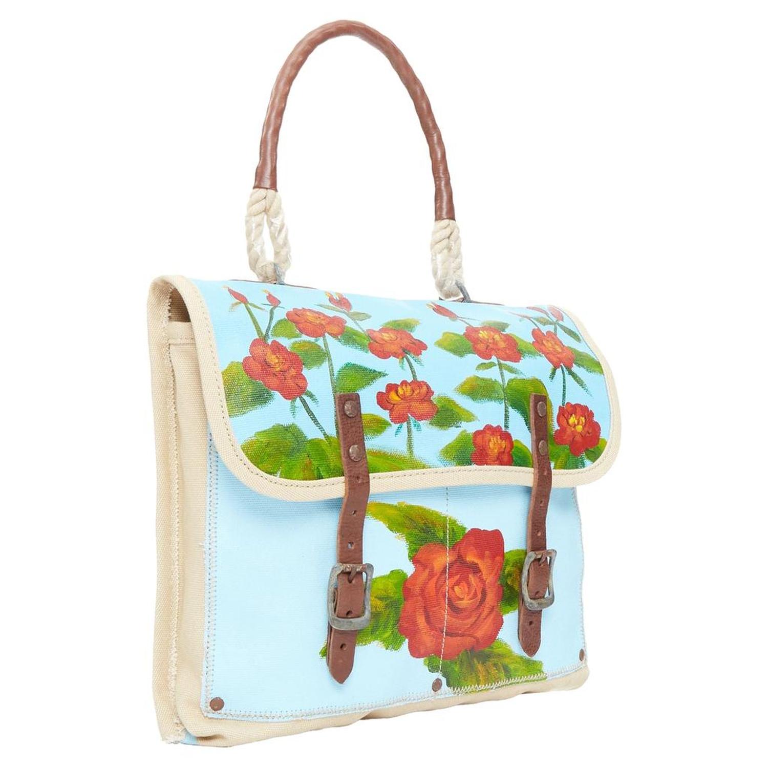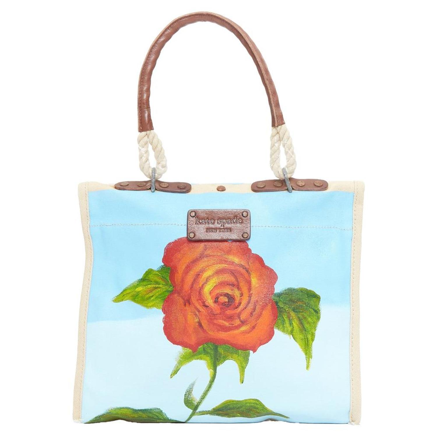 KATE SPADE WWII Hand Painted blue red rose print leather satchel tote bagReference - ANWU/A01339Brand - Kate SpadeMaterial - Canvas, LeatherColor - Blue, BeigePattern - FloralClosure - BeltLining - Nude CanvasExtra Details - Colorful hand-painted roses on blue background. Single rolled leather handle. Leather trim & buckle straps. Interior zippered pocket. 2 front pockets. Belt & buckle front closure.CONDITION - Condition - Good, this item was pre-owned and is in good condition. Please refer to image gallery for thorough condition check. Tarnished hardware and canvas is slightly stained by hardware.MEASUREMENTS - Width (width across base) - 32cm / 12.5"Height (base to opening) - 25cm / 9.8"Depth (side depth) - 4cm / 1.6"Handle drop - 17cm / 6.6"JHROP is not affiliated with Kate Spade. This Kate Spade item is authentic.JHROP is a fashion ReCommerce company. We offer a curated selection of pristine and pre-owned luxury designer goods, from rare collectible archives to current season must-haves! Every item is inspected in-house by our team of trained authenticators who check for authenticity and ensure all products are accurately presented in our listings. With our multi-point authentication system and our expertise in the fashion industry, we aim to provide clients with a stress-free, sustainable, and efficient shopping experience. Shop the latest Designer Drop at JHROP! Measurments - width - 40 mm length - 320 mm height - 250 mm handle drop - 170 mm