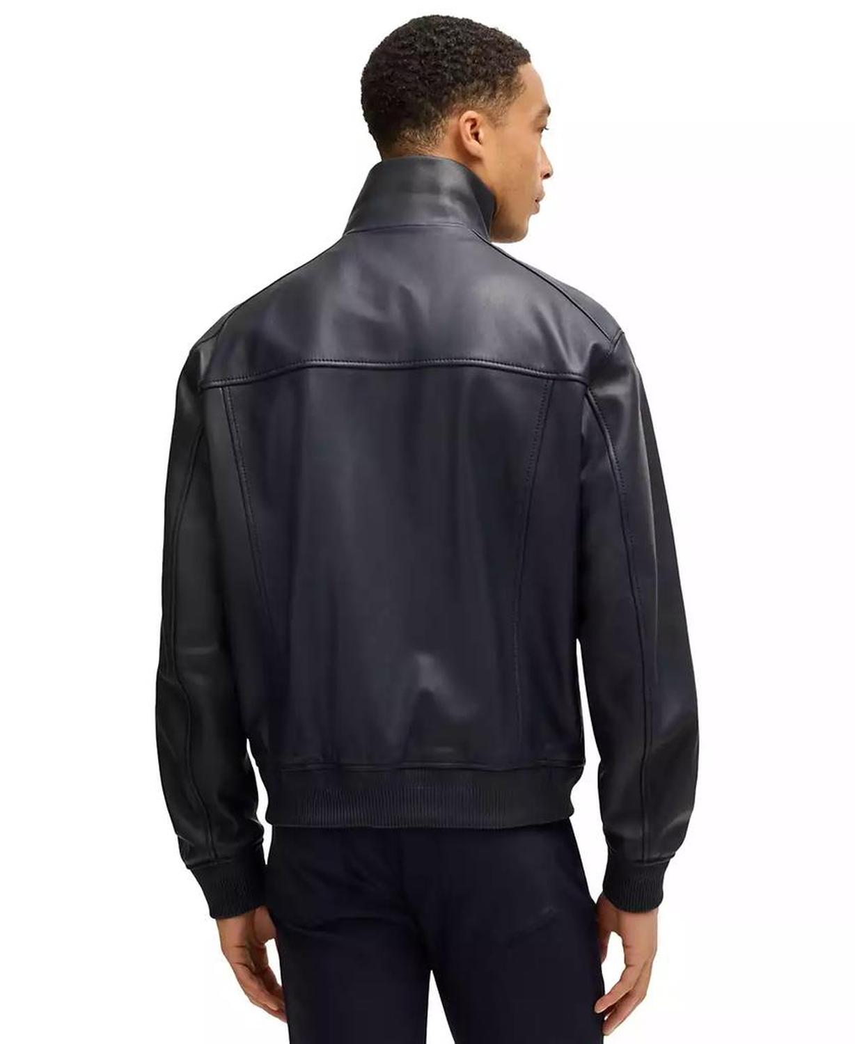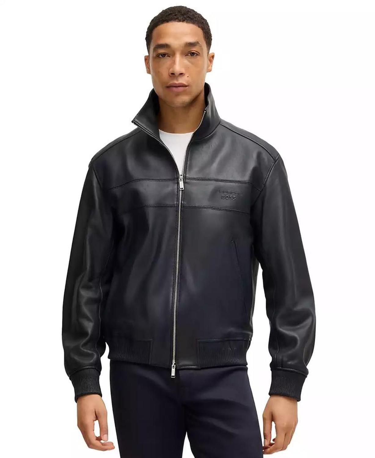 • With a stand collar and straight fit, this men's Porsche x Boss jacket has a clean silhouette. Crafted in finest leather with tonal collaborative branding. Part of the Porsche x Boss capsule, a collection of bold styles that captures the Boss attitude of drive and determination.