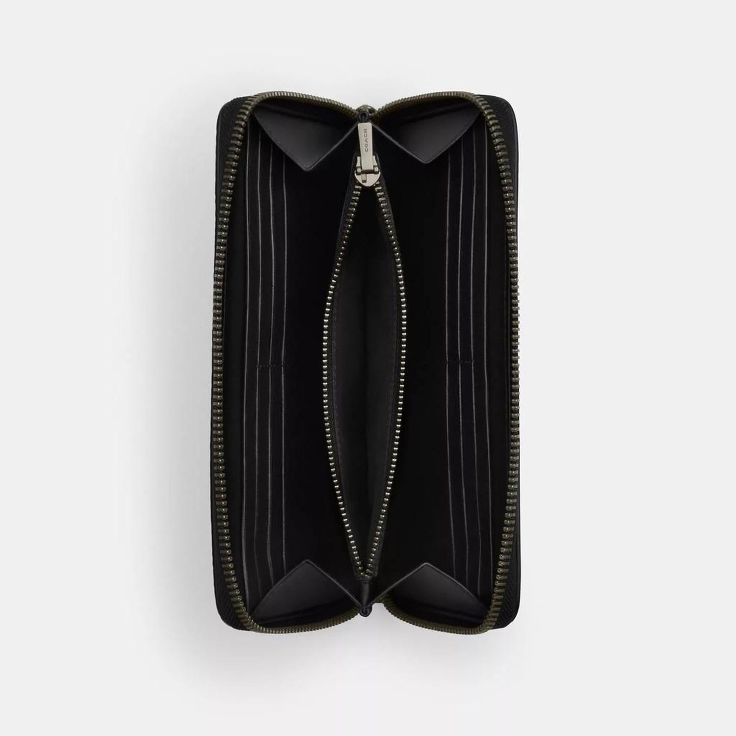 • Signature coated canvas and smooth calf leather 12 credit card slots Full-length bill compartments Zip coin pocket Zip-around closure Outside open pocket 7 1/2 (L) x 4 (H) x 3/4 (W) Fits all phone sizes up to an iPhone X and Samsung S7 Edge Style No. CY405 | Coach Outlet Accordion Wallet In Signature Canvas - Multi