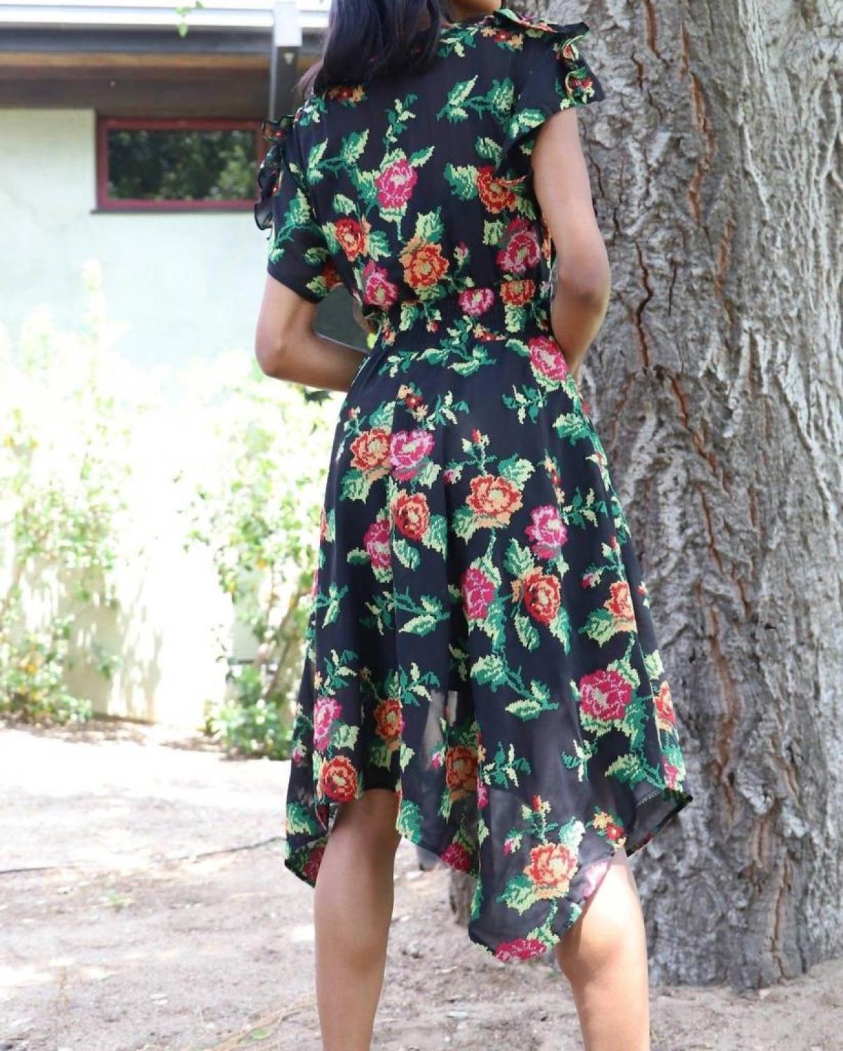A midi dress so versatile, your options for wearing it are endless.Fabulously feminine, the Amara Dress dress has all our favorite details. The figure flattering front yolk and back ruching is complementary to most body shapes, while the ruffles on the shoulder lends a sassy touch. Boat neck Ruffled shoulders Dropped shoulder Handkerchief hem Pullover styling