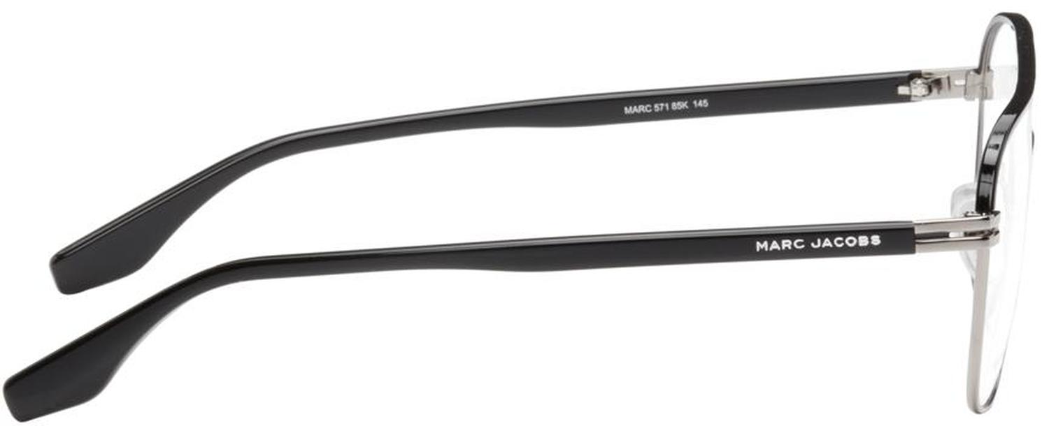 Aviator-style stainless steel-frame optical glasses in silver-tone and black. Double bridge. Adjustable metal nose pads. Logo engraved in silver-tone at black acetate temple tips. Size: 57.16 145.