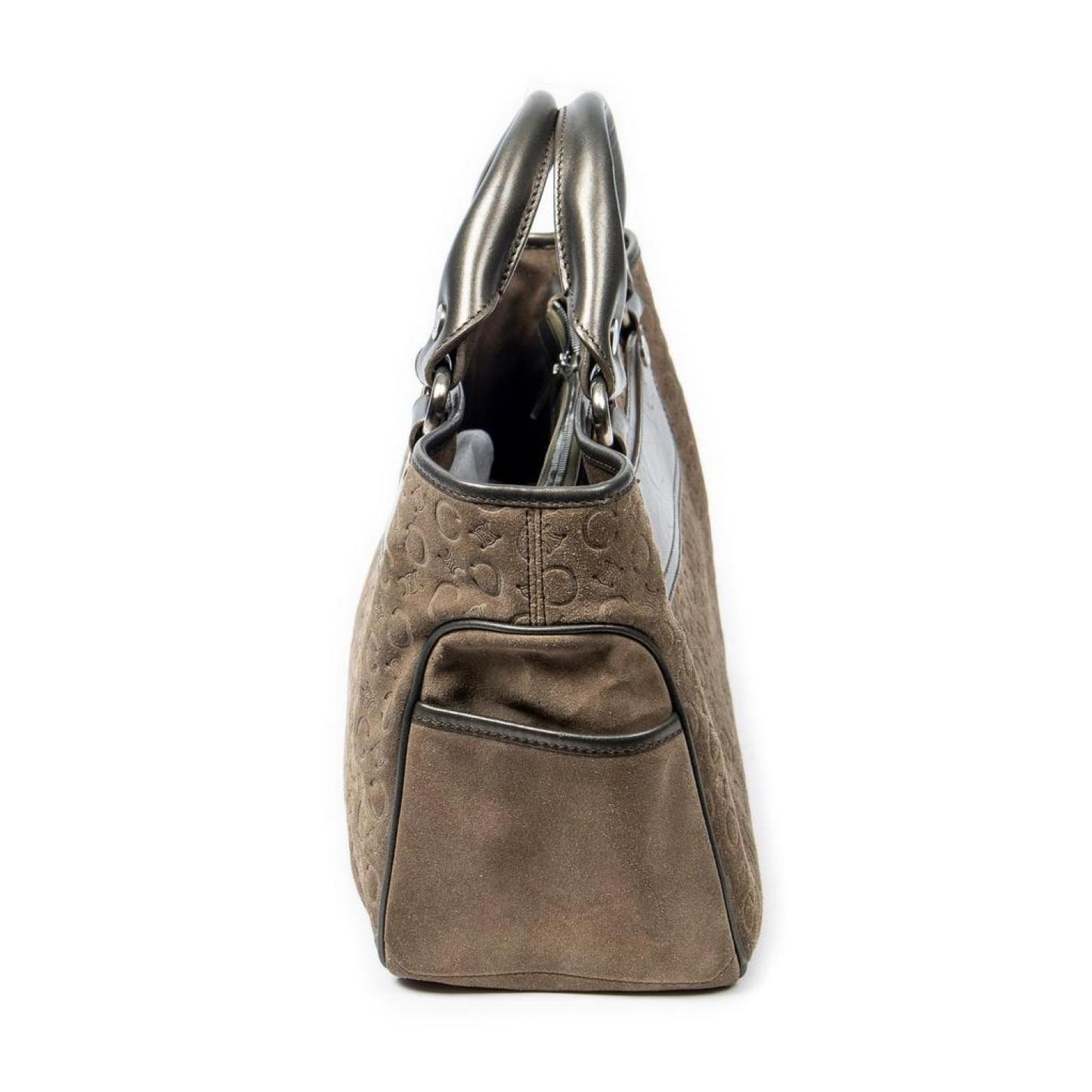 • Celine Handbag in Brown C Carriage Embossed Suede Leather and Silver hardware. Dimensions - 32*20*13cm. Serial number - CE00-32. Inclusions - Dustbag.