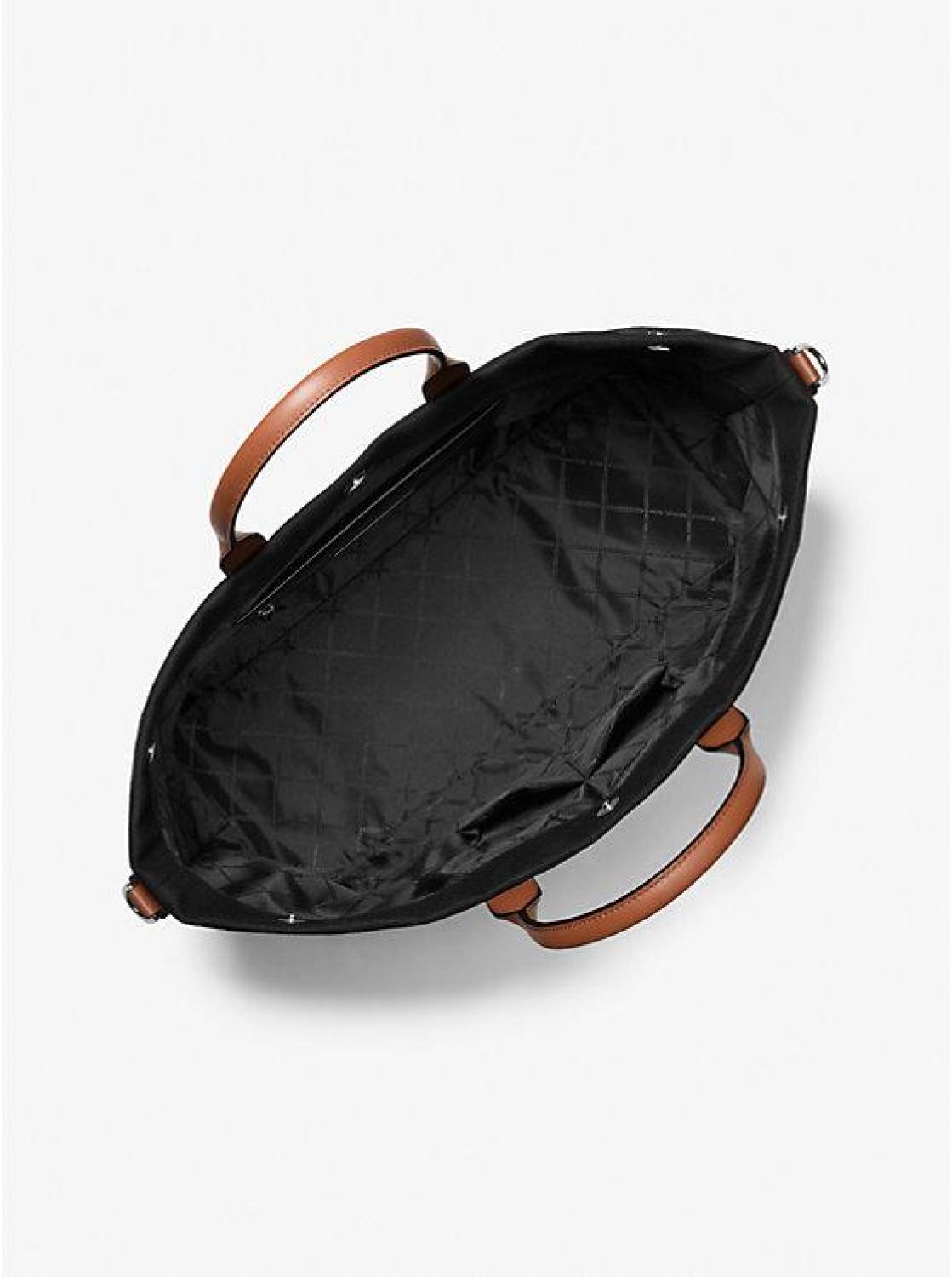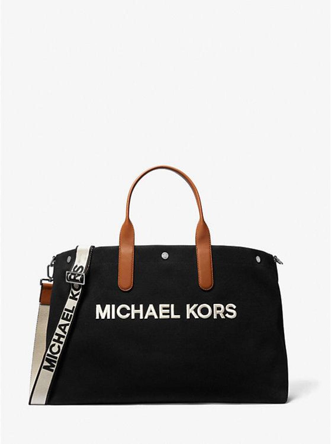• The weekender bag, reimagined for the savvy, sophisticated traveler. Roomy enough to stash all your belongings, it’s made from 100% cotton canvas and elevated by smooth leather handles. Designed with two carrying options thanks to a detachable logo webbing strap, it’s the perfect companion for weekends away.
