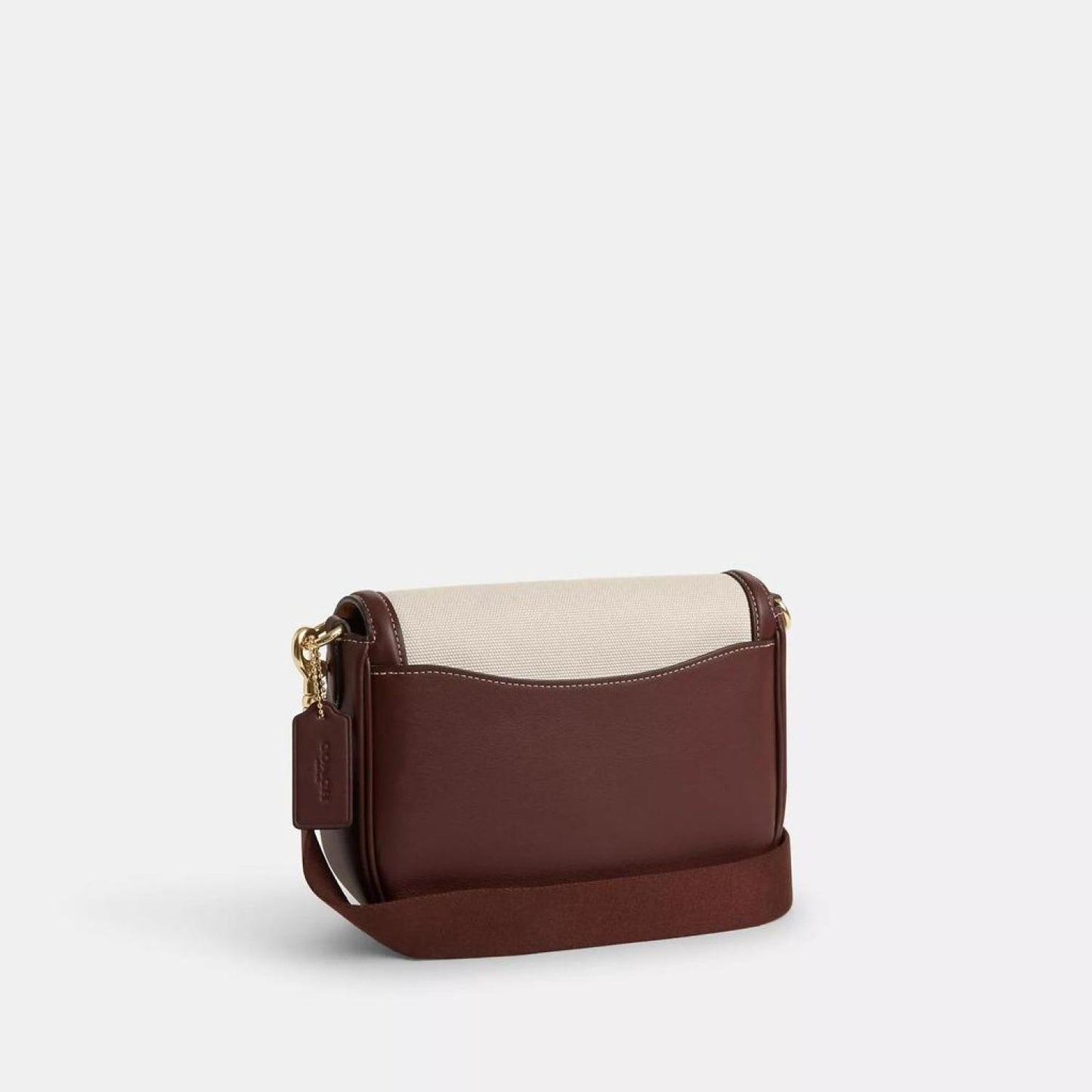 Canvas and smooth leather Inside multifunction pocket Snap closure fabric lining Outside open pocket Detachable strap with 25 1/2 drop for shoulder or crossbody wear 9 1/4 (L) x 7 (H) x 3 1/4 (W) Exclusive of trim this piece is crafted of cotton sourced from farms that use regenerative agricultural practices—those that help to maintain and rejuvenate land increase biological diversity and soil health and could lead to increased carbon absorption Style No. CR171 | Coach Outlet Amelia Saddle Bag - Beige