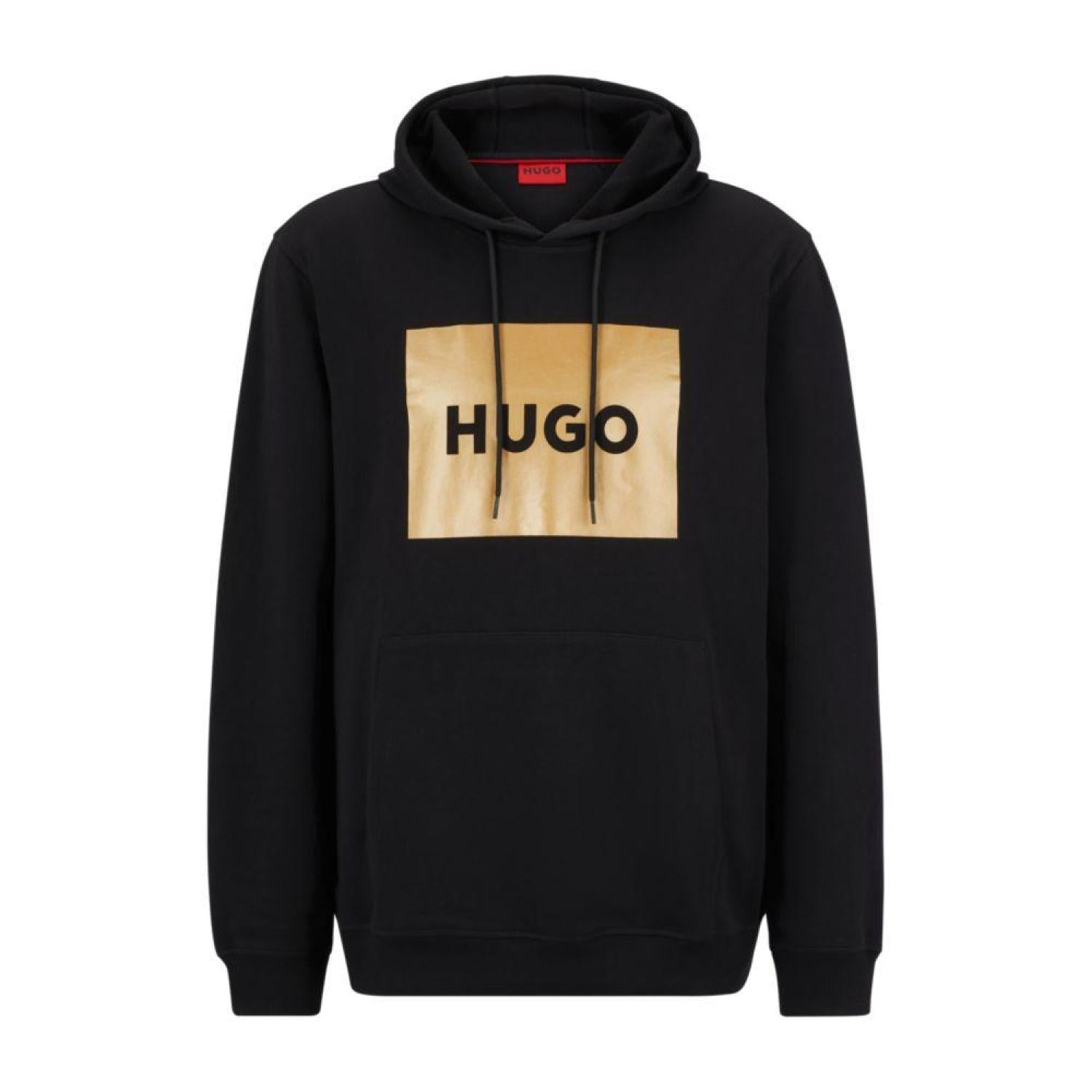 A signature hoodie by HUGO Menswear. Crafted in French terry with a super-soft feel, this hooded sweatshirt is cut to a regular fit and foil-printed with logo artwork at the chest.