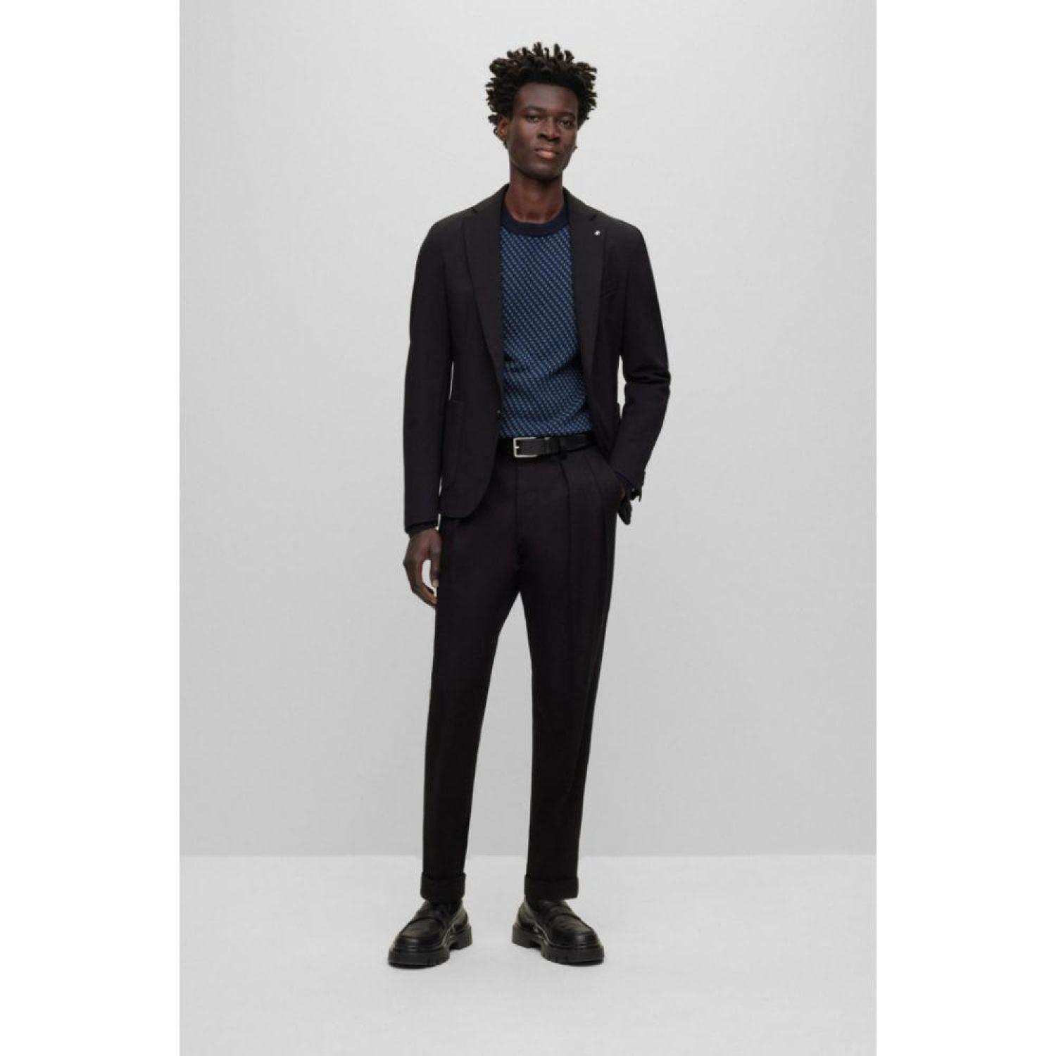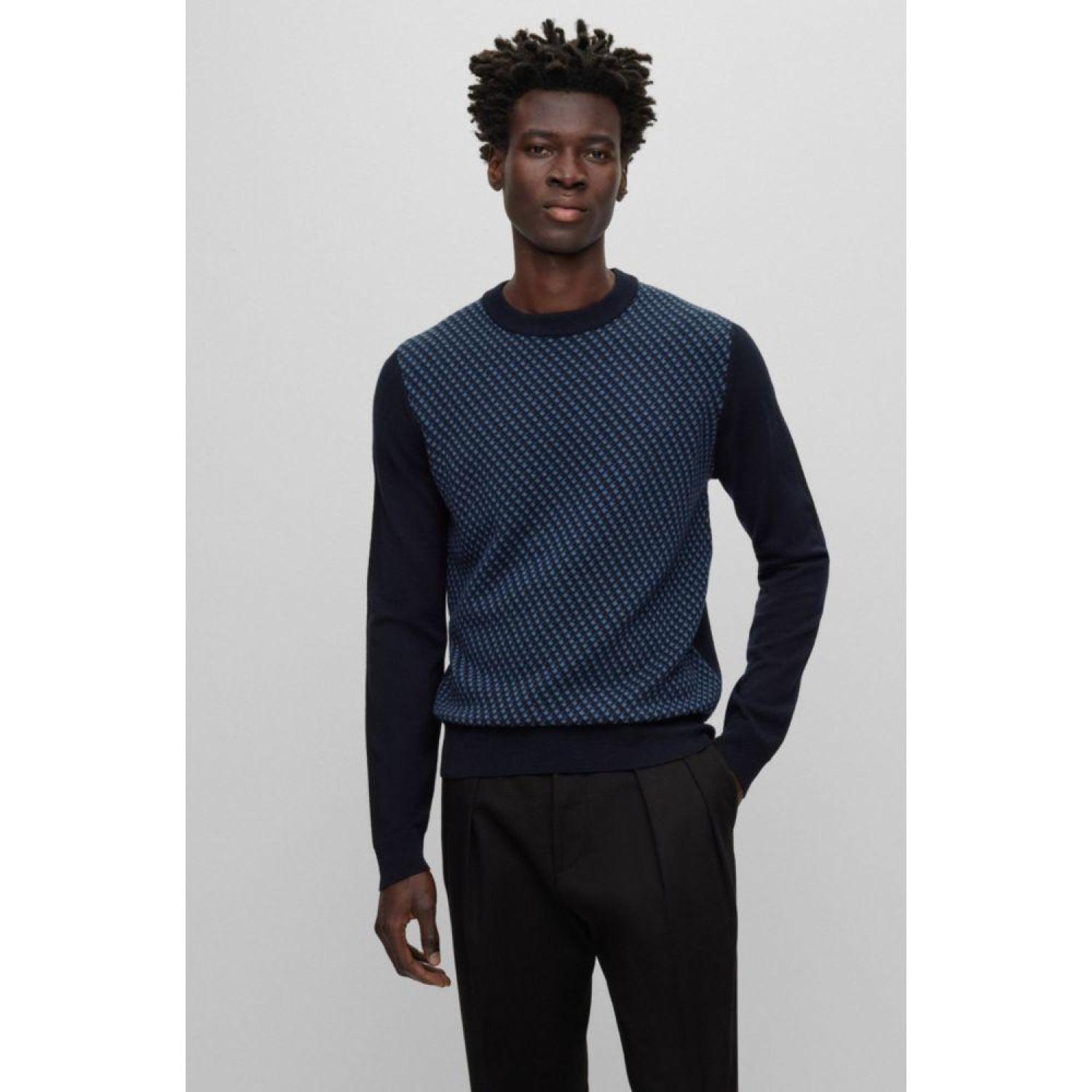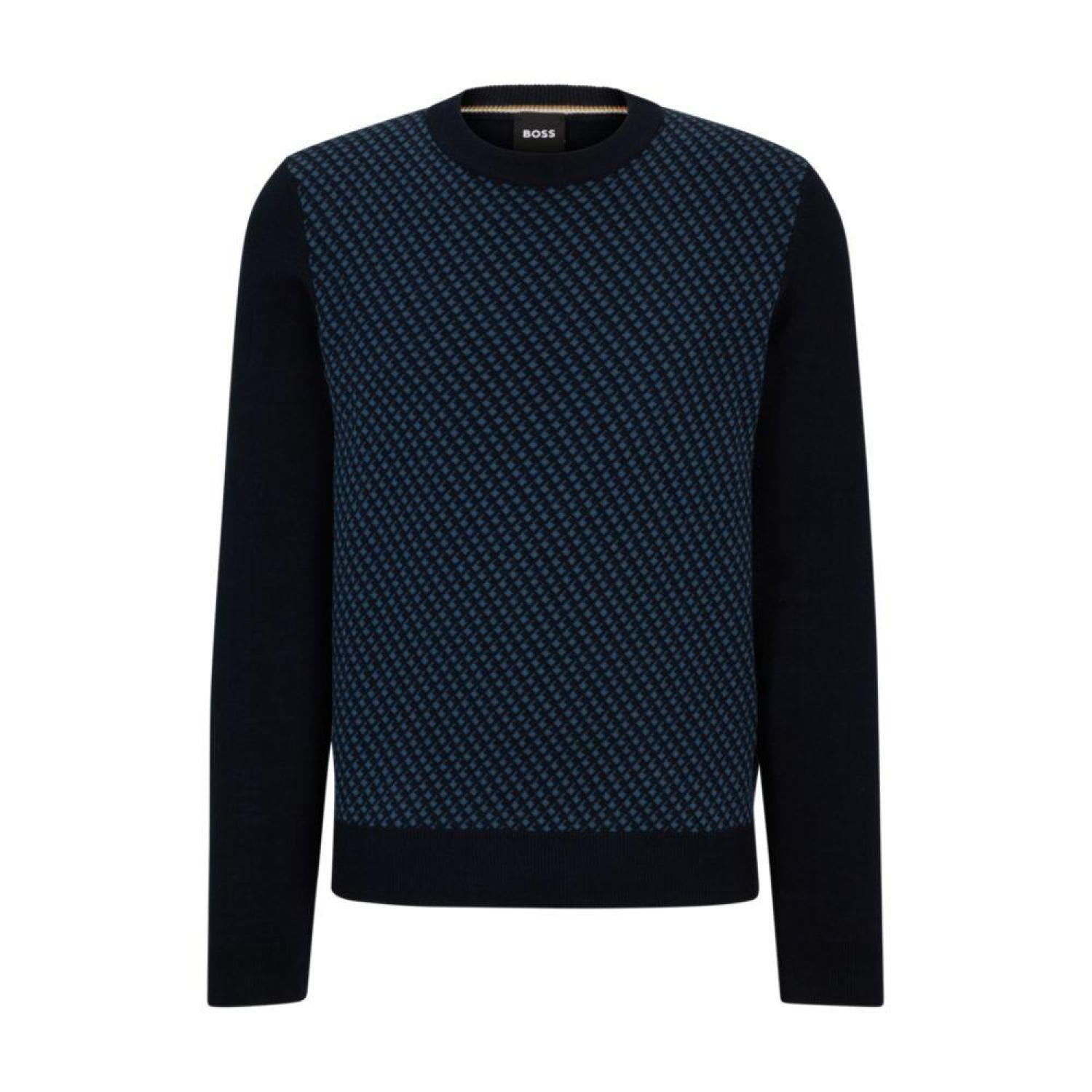 A crew-neck sweater by BOSS Menswear, cut to a straight fit, blended with virgin wool and knitted with a jacquard pattern on the front.