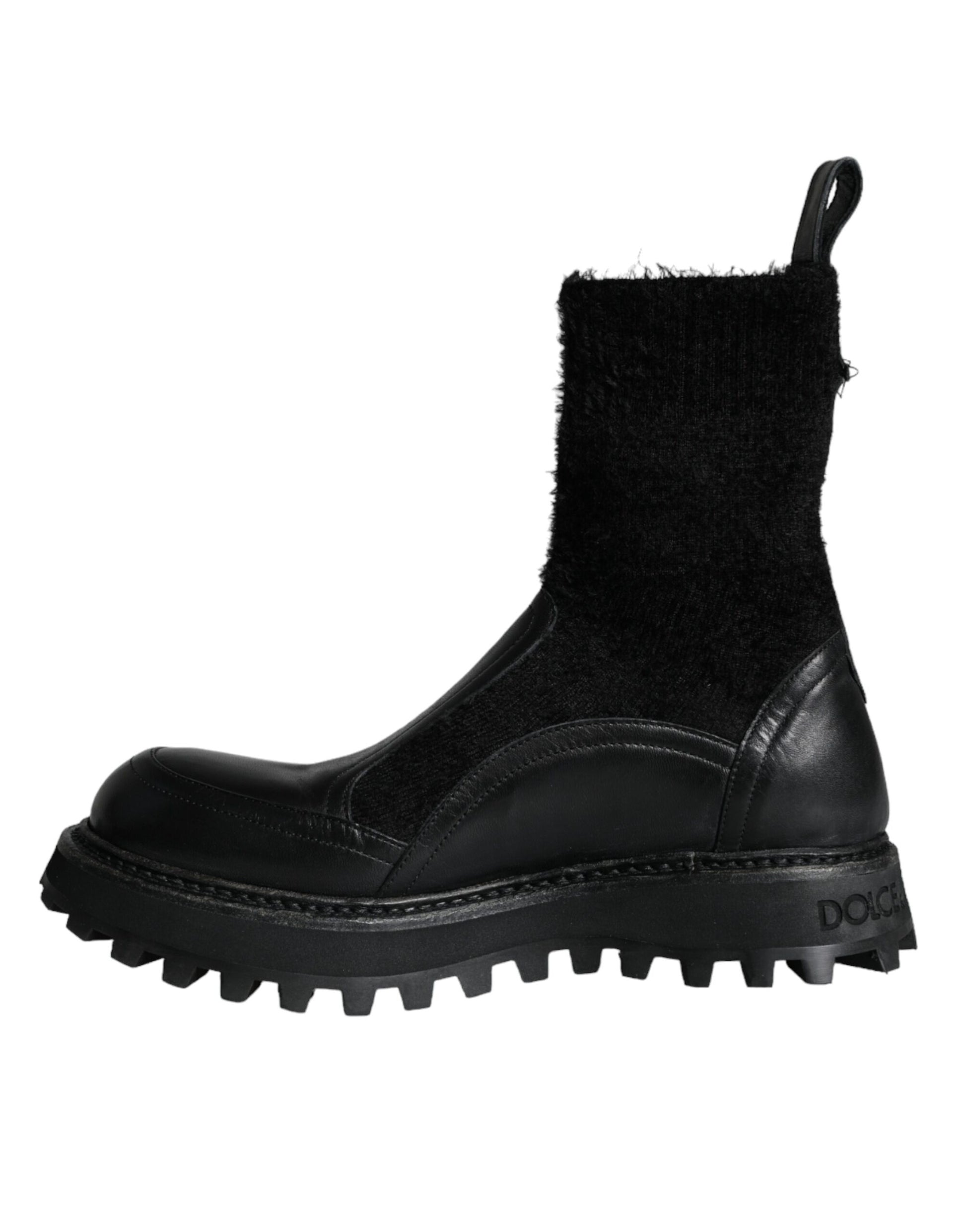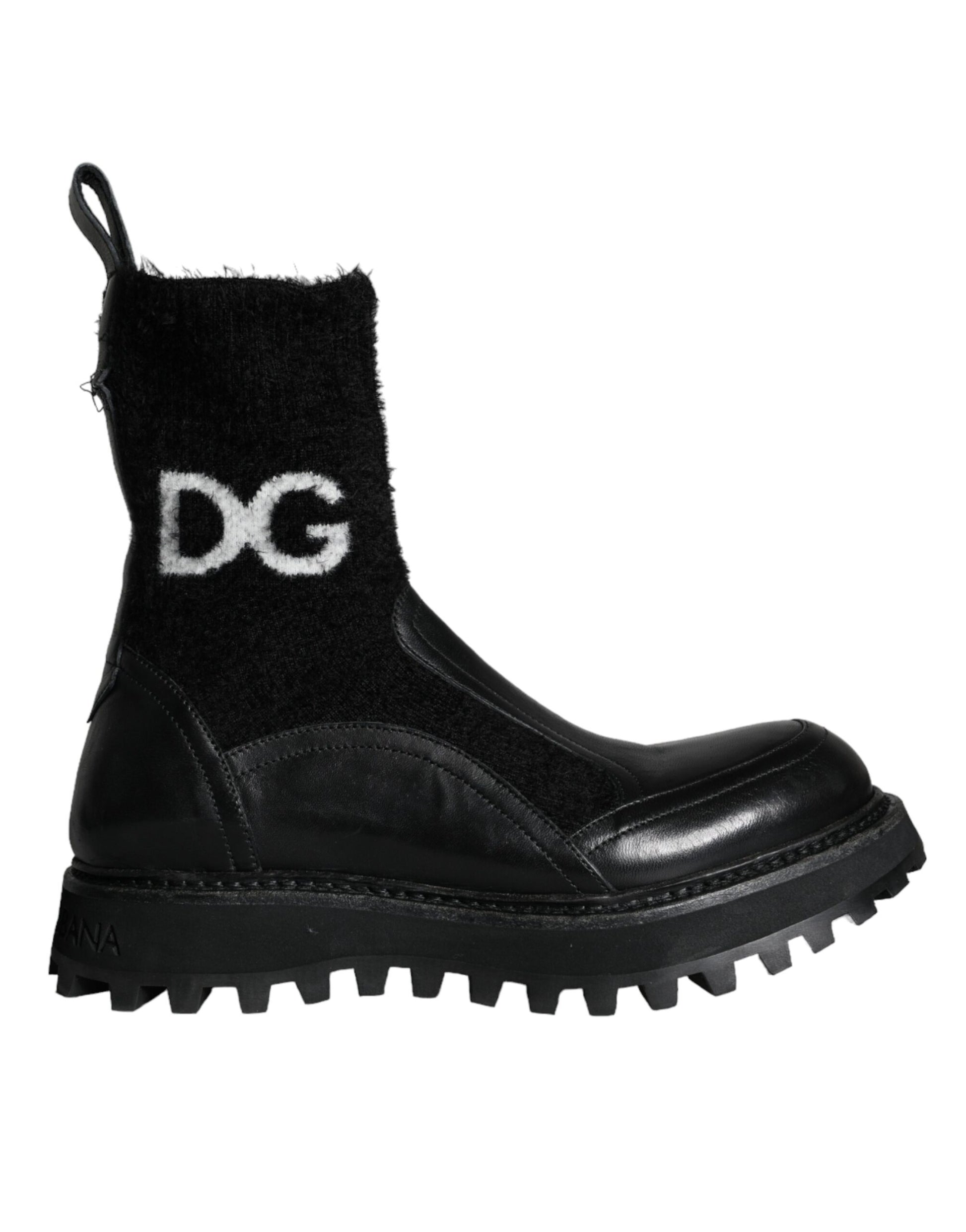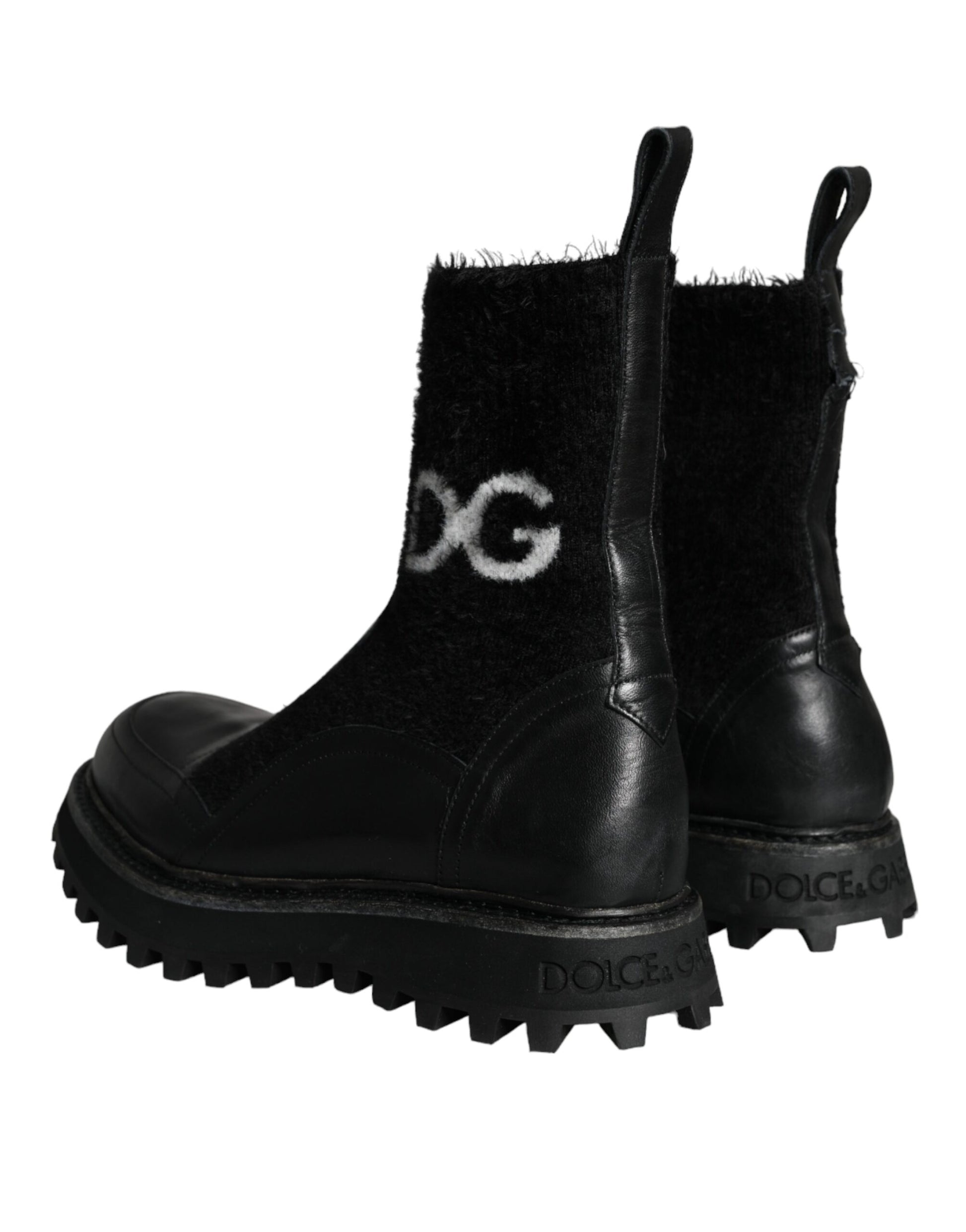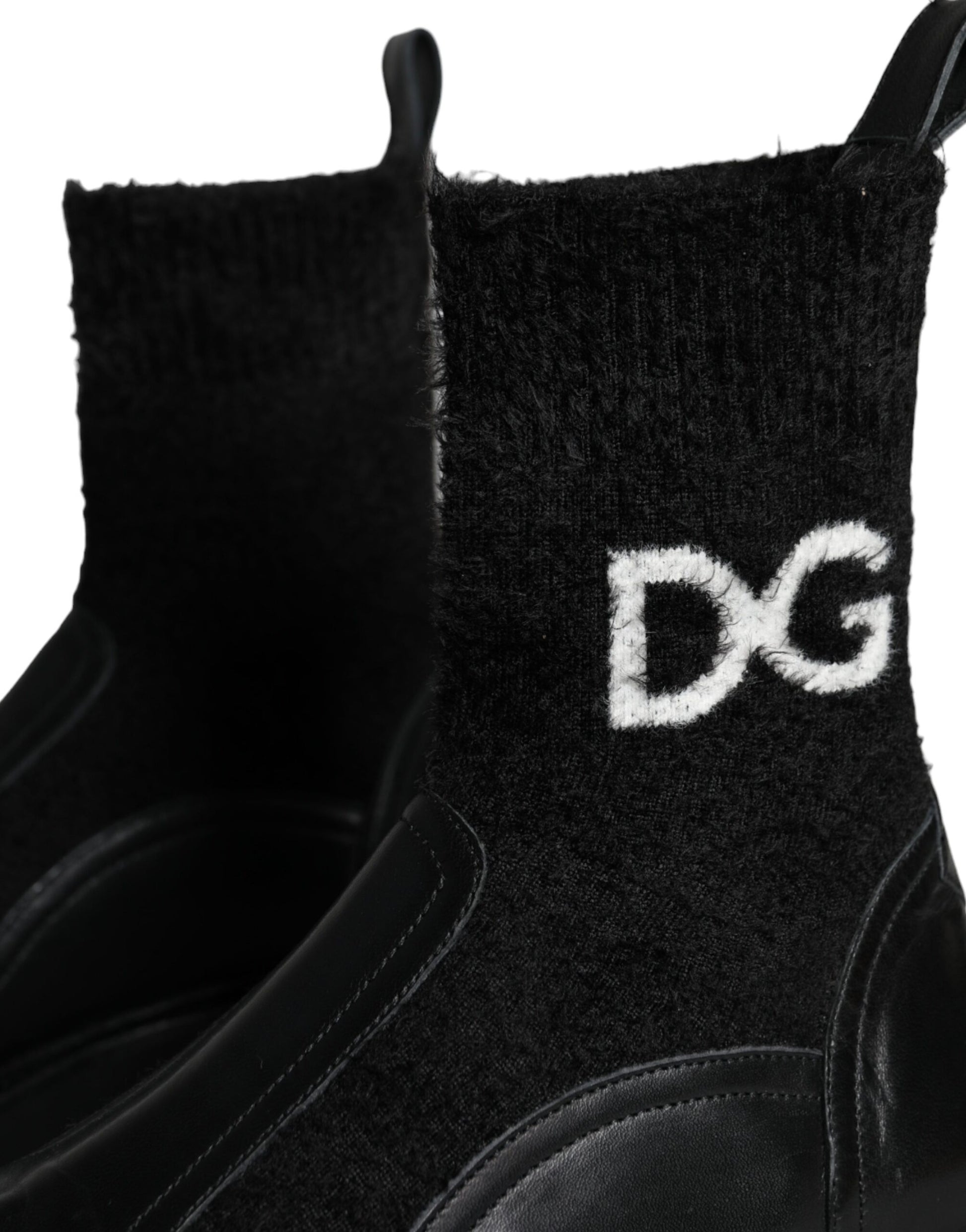 Dolce & Gabbana Black DG Logo Horse Sock Ankle Boots Shoes