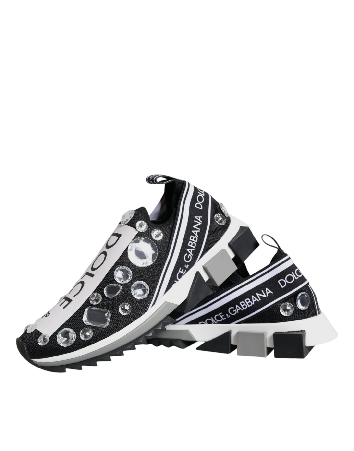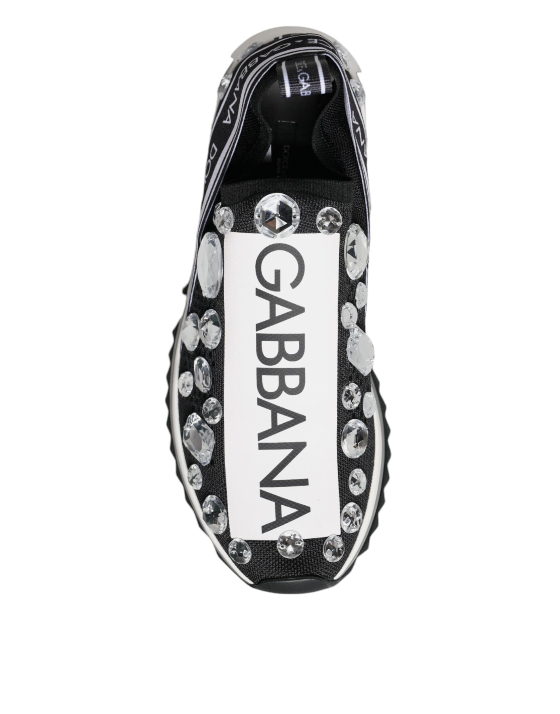 Dolce & Gabbana Black Sorrento Crystals Low Top Sneakers Shoes