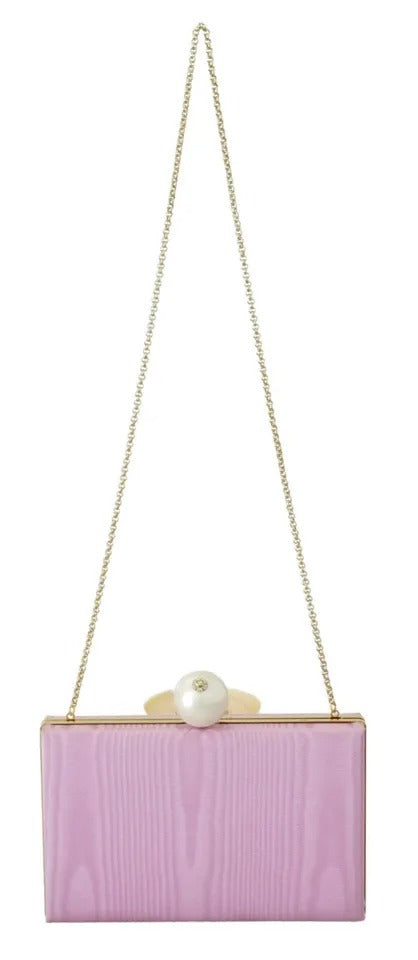 Gorgeous brand new with tags and box, 100% Authentic Dolce & Gabbana miniature clutch, pink model, covered with dense moire silk. The minaudière is closed with a golden frame lid.