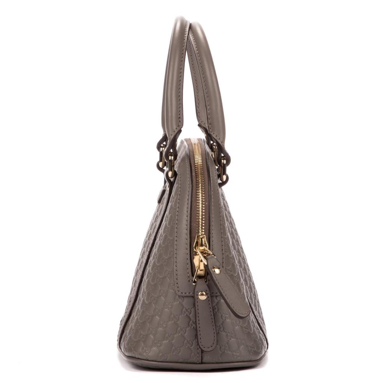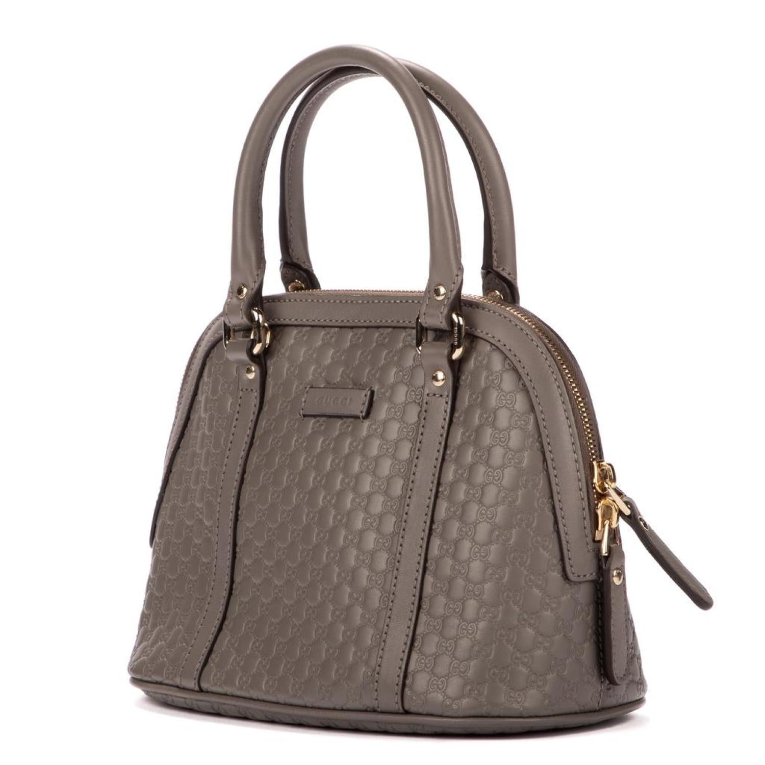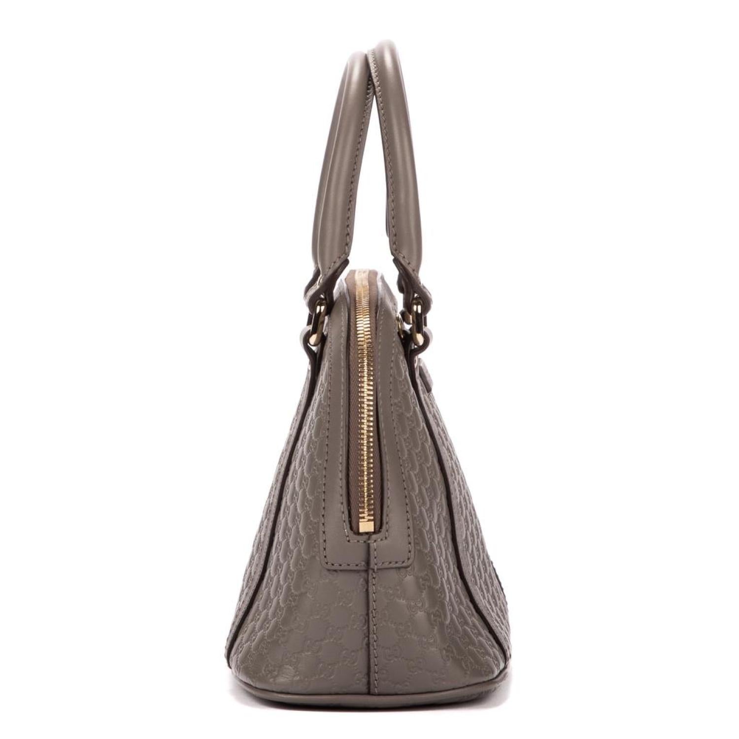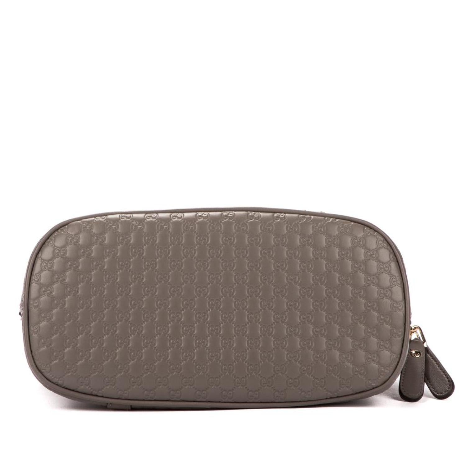 • Gucci Handbag in Grey Calfskin Guccissima Monogram and Light Gold hardware. Dimensions - 23*18*12cm. Serial number - 449654520981. Inclusions - N/A.