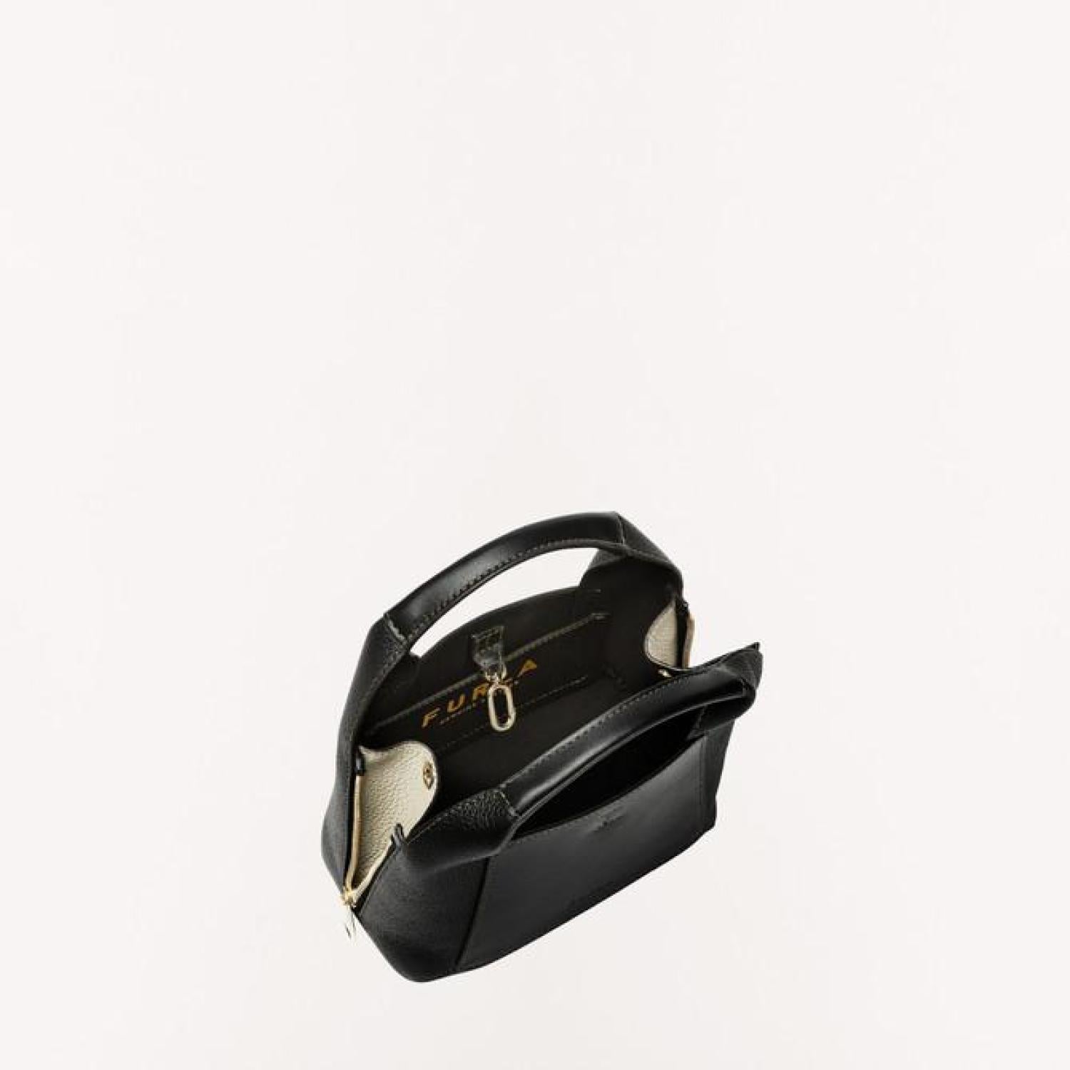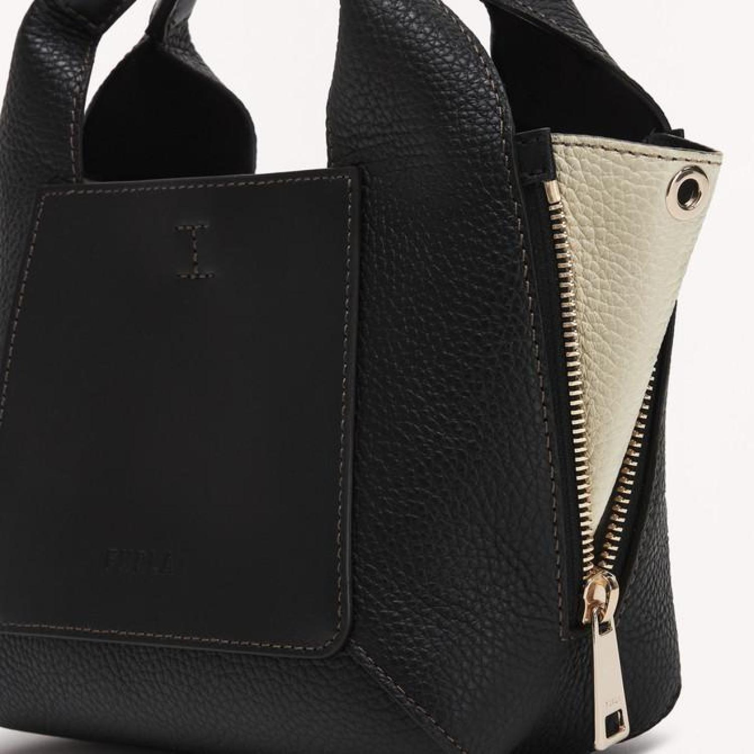 • Furla Gilda is mini shopping bag made in a combination of colour-block grained Eracle leather and grained Roma leather. The sophisticated and elegant accessory features wrapped handles and an adjustable and removable strap so it can be worn as either a handbag or as a crossbody bag. The Furla logo punched on the front completes the bag with a unique touch.