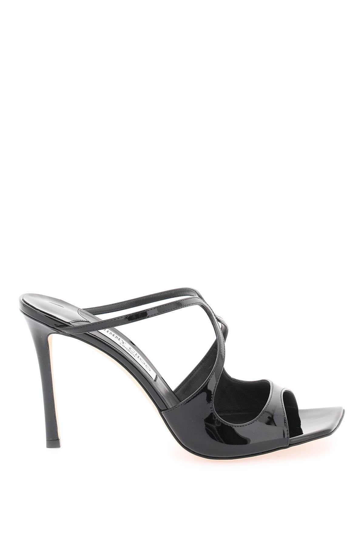 • Jimmy Choo Anise 95 mules crafted in patent leather with a covered stiletto heel, leather interior and leather sole. Heel Height = 9,5 cm