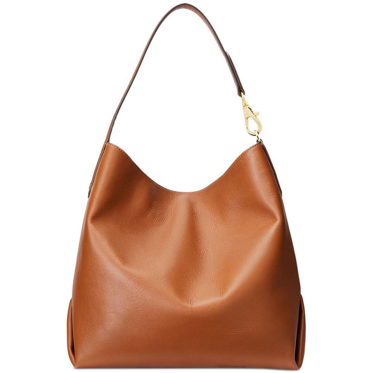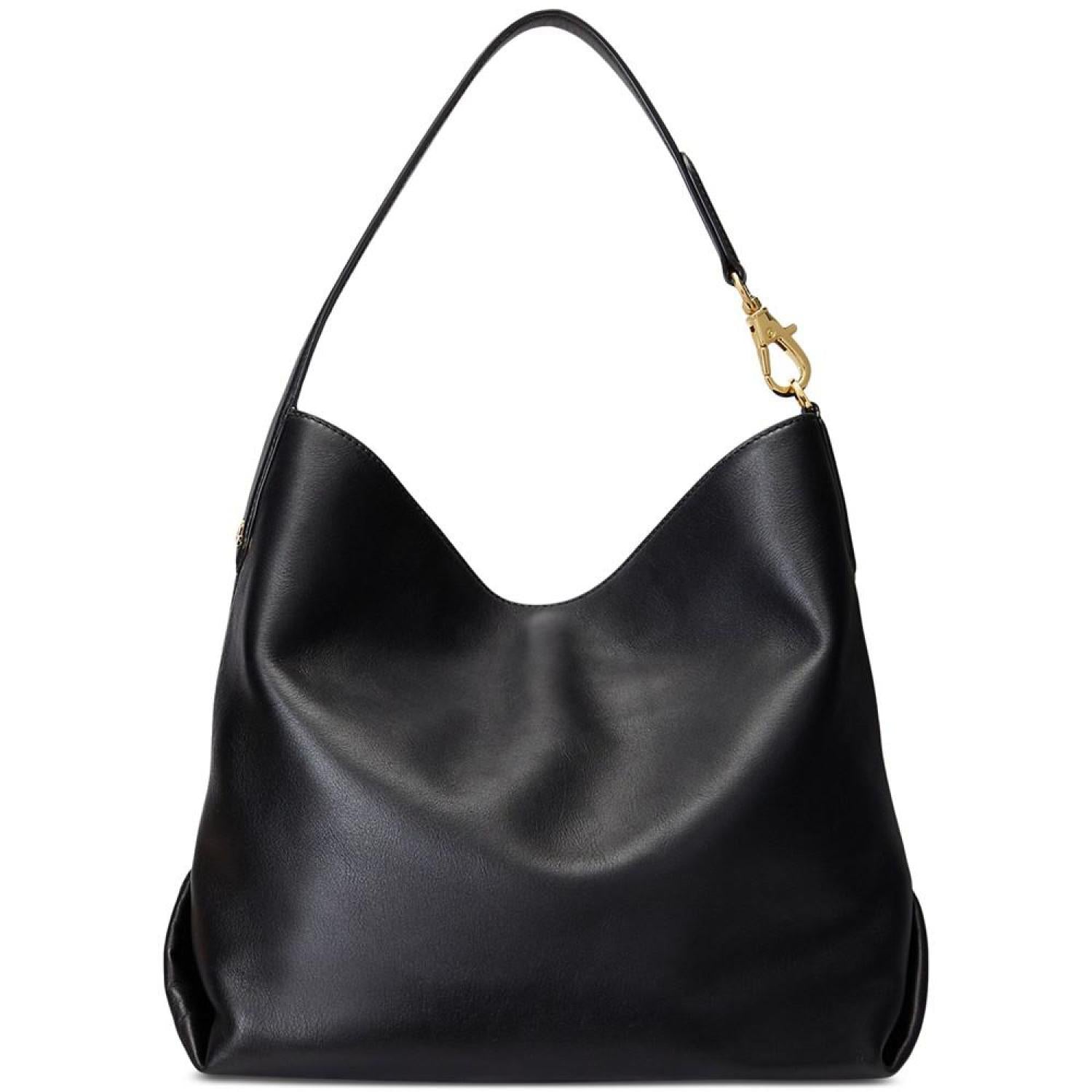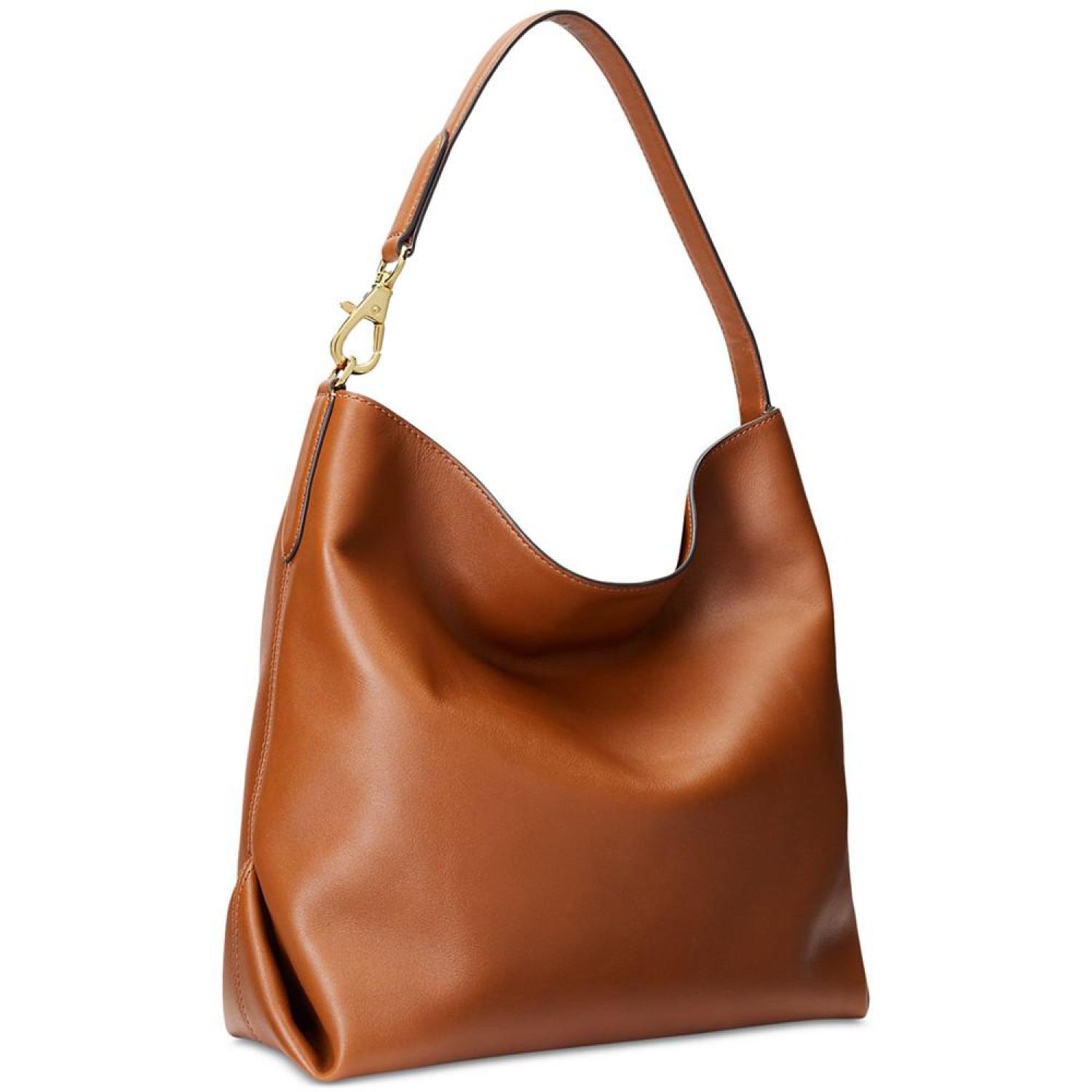 Designed with a contemporary dog-clip shoulder strap and a chic slouchy silhouette, Lauren Ralph Lauren's Kassie offers ample storage for your essentials. Large sized bag; 16-1/2"W x 12-1/2"H x 6-1/4"D (width is measured across the bottom of handbag); 2.3 lbs. approx. weight Silhouette is based off 5'9" model 23-1/2"L dog-clip shoulder strap Magnetic snap closure Gold-tone hardware Interior zip & slip pockets Dust bag included Leather; lining: polyester Professional leather clean Imported