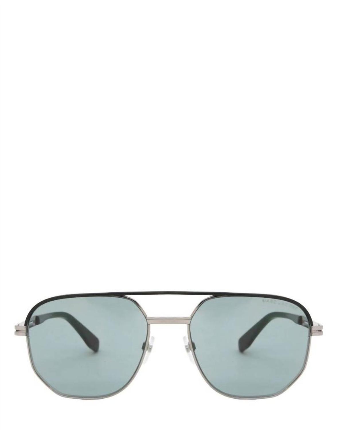 Men's Metal Aviator Sunglasses In Ruthenium Black / Green