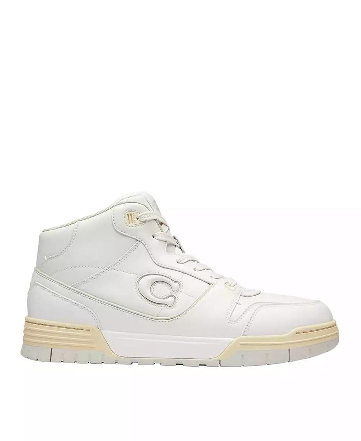 Embrace the spirit of New York City with these COACH Soho sneakers, featuring a mid-top design. A grooved rubber outsole, detailed with a map of Manhattan, provides both traction and style. The lace-up closure ensures a secure and comfortable fit. Additional details: round toe; spot clean Lace-up closure Rubber outsole detailed with a map of Manhattan Upper: leather; lining: fabric; outsole: rubber; mid-sole: ethylene-vinyl acetate Spot clean Imported