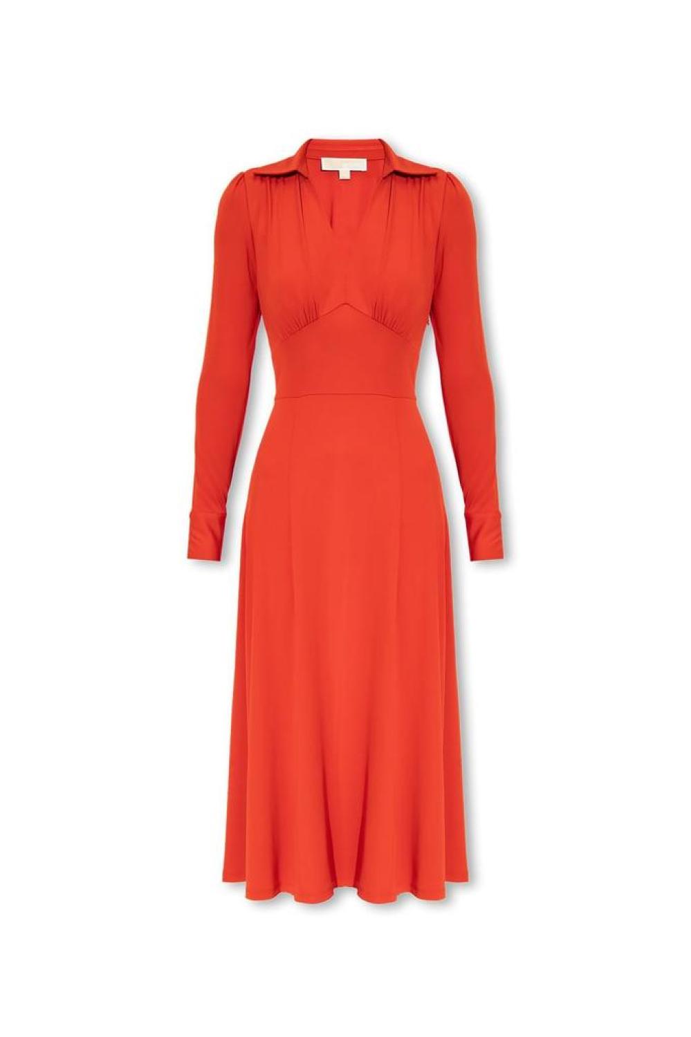 Michael Michael Kors Long Sleeved V-Neck Midi Dress