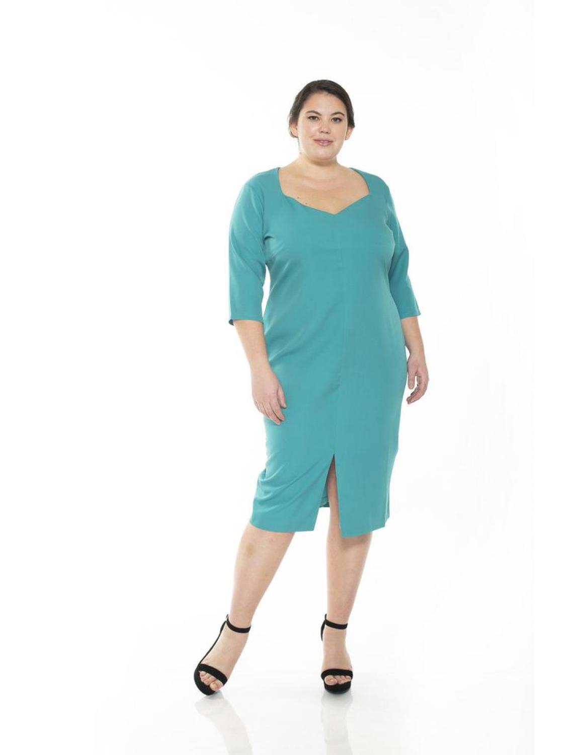 • PRODUCT FEATURES Sweetheart neckline 3/4 sleeves Front slit 97% Polyester, 3% Spandex Lined - 100% Polyester Machine Wash Imported Style D3719PLS