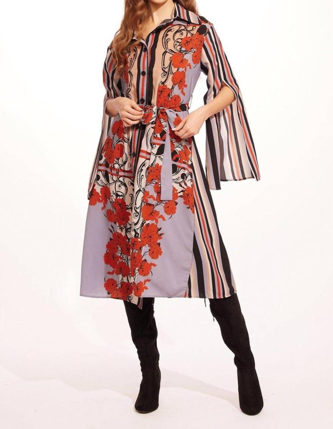 • Just add slides or mules and you are good to go.This collared, button front beauty has all the details you crave - ties at the waist for a cinched look, midi length and a floral print. 100% Polyester; 100% Polyester lining