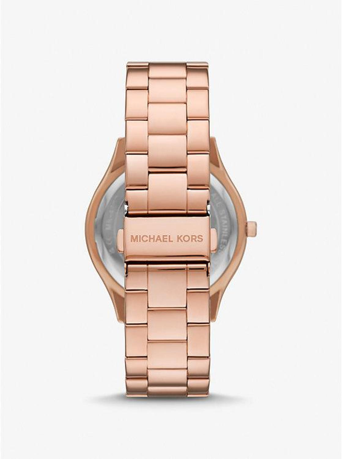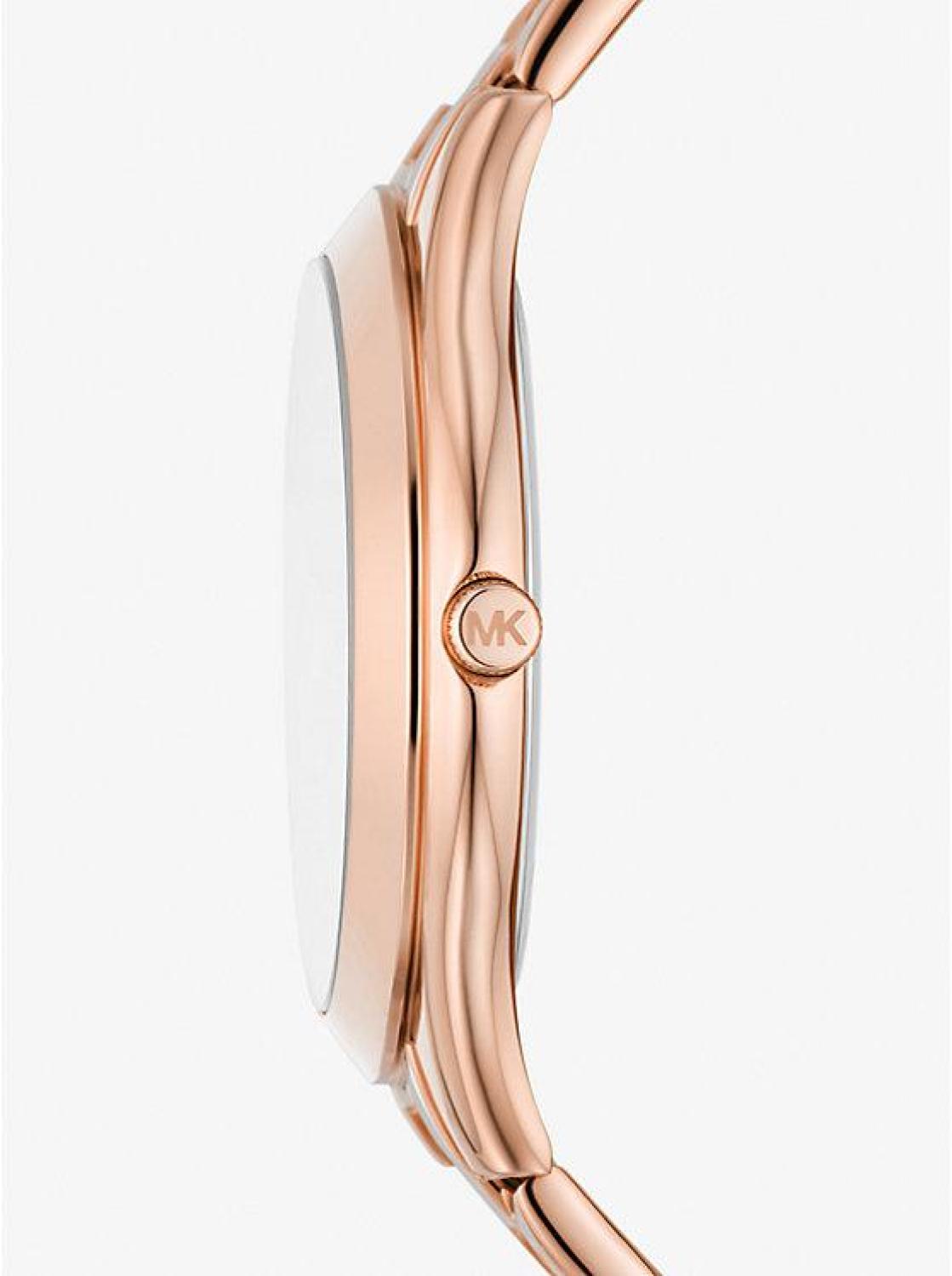 • A perennial favorite, our iconic Runway watch gets a sleek update for the season. A luxurious pavé dial and minimalist time stops create a modern sensibility, while the rose gold-tone stainless steel construction adds a versatile touch to your favorite looks.