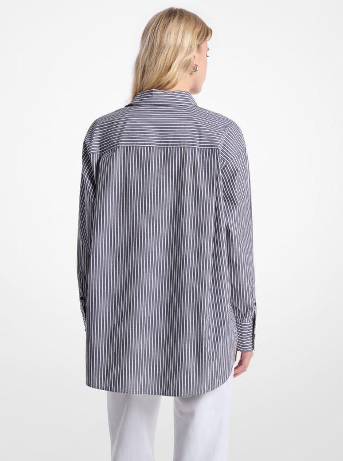Made from crisp cotton poplin and cut for an oversized fit, this striped shirt features a slightly longer back, curved hem and pearlescent buttons. The black-and-white palette ensures endless styling versatility all year round. • Shirt • Cotton poplin • 100% cotton • Button fastening • Machine wash • Imported • Model is 5’10”/178 cm wearing size XS • Shirt • Cotton poplin • 100% cotton • Button fastening • Machine wash • Imported • Model is 5’10”/178 cm wearing size XS