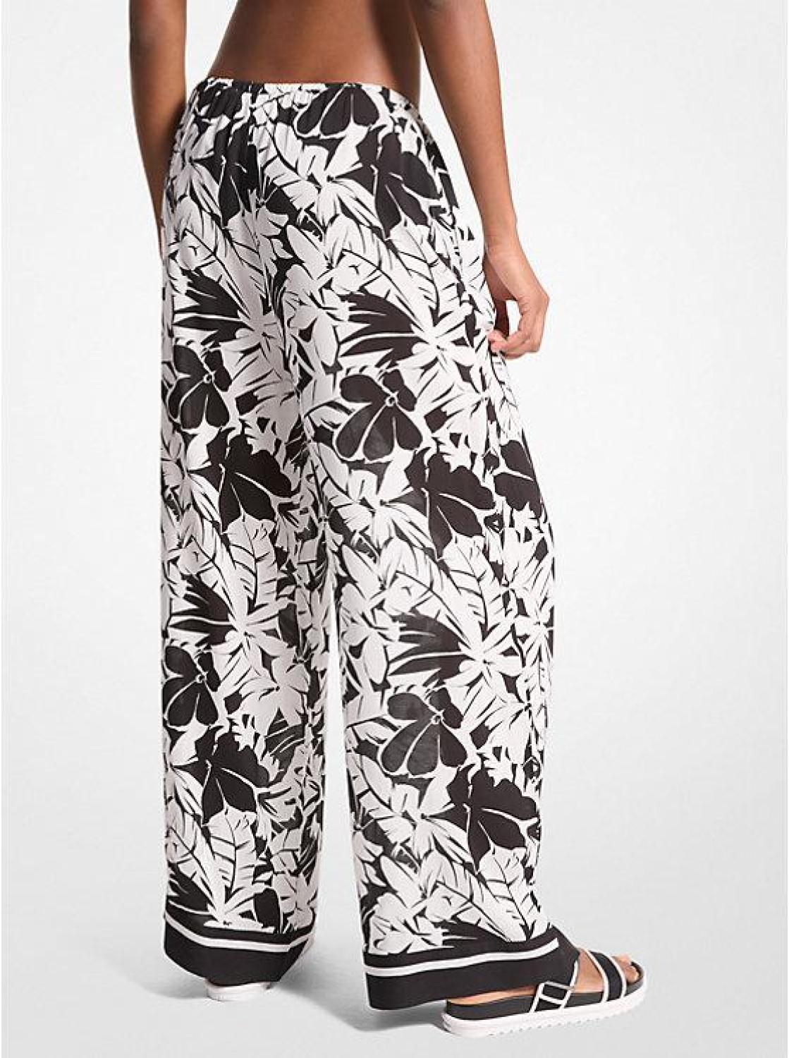 Transition from the city streets to the beach club with these effortlessly chic wide-leg pants. Printed with palm fronds, all you need is a black bikini to complete the monochromatic look.