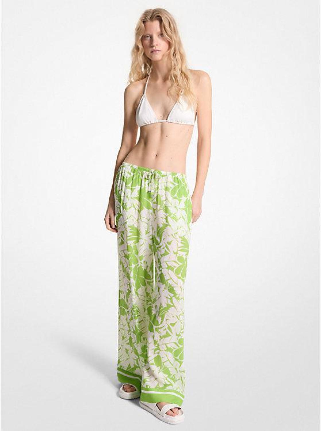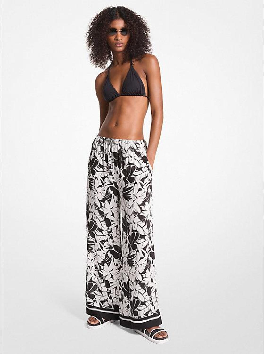 • Transition from the city streets to the beach club with these effortlessly chic wide-leg pants. Printed with palm fronds, all you need is a black bikini to complete the monochromatic look.