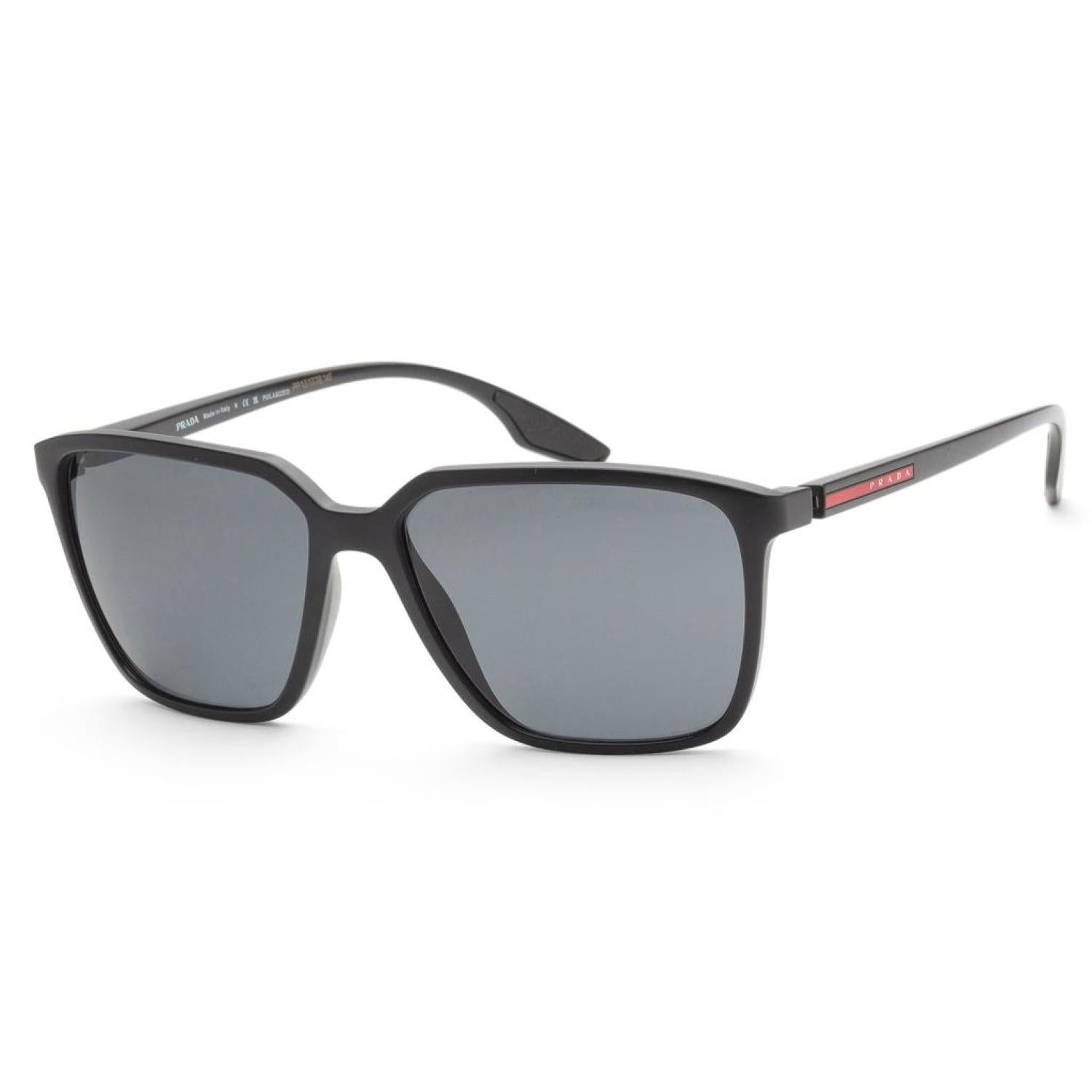 Prada Men's Sunglasses. Dimensions - 58 mm x 145 mm x 145 mm. Black Demishiny Pillow Plastic frame, Polar Grey lenses. 100% UV Protection, Polarized. Made in Italy (PS06VS-1BO5Z1)