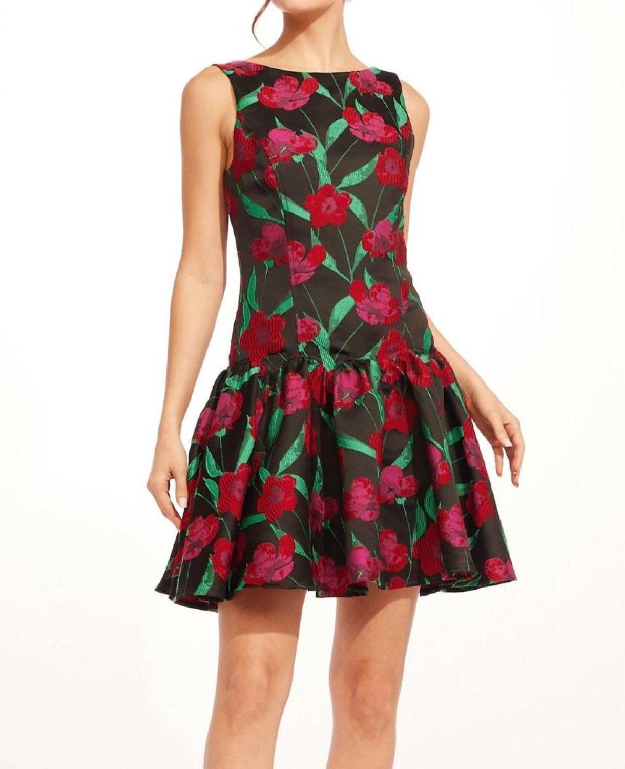 • The perfect mini dress for those warmer months.Fully lined, featuring a luxurious Jacquard floral fabric, a side zip, and a stylish tiered hem. Sleeveless mini dress. 100% Polyester; 100% Polyester lining