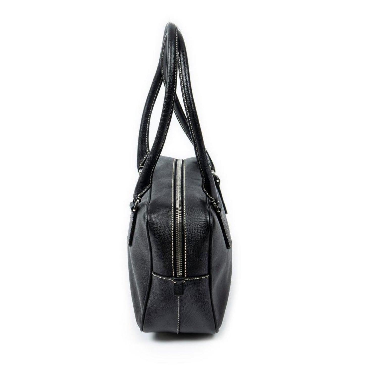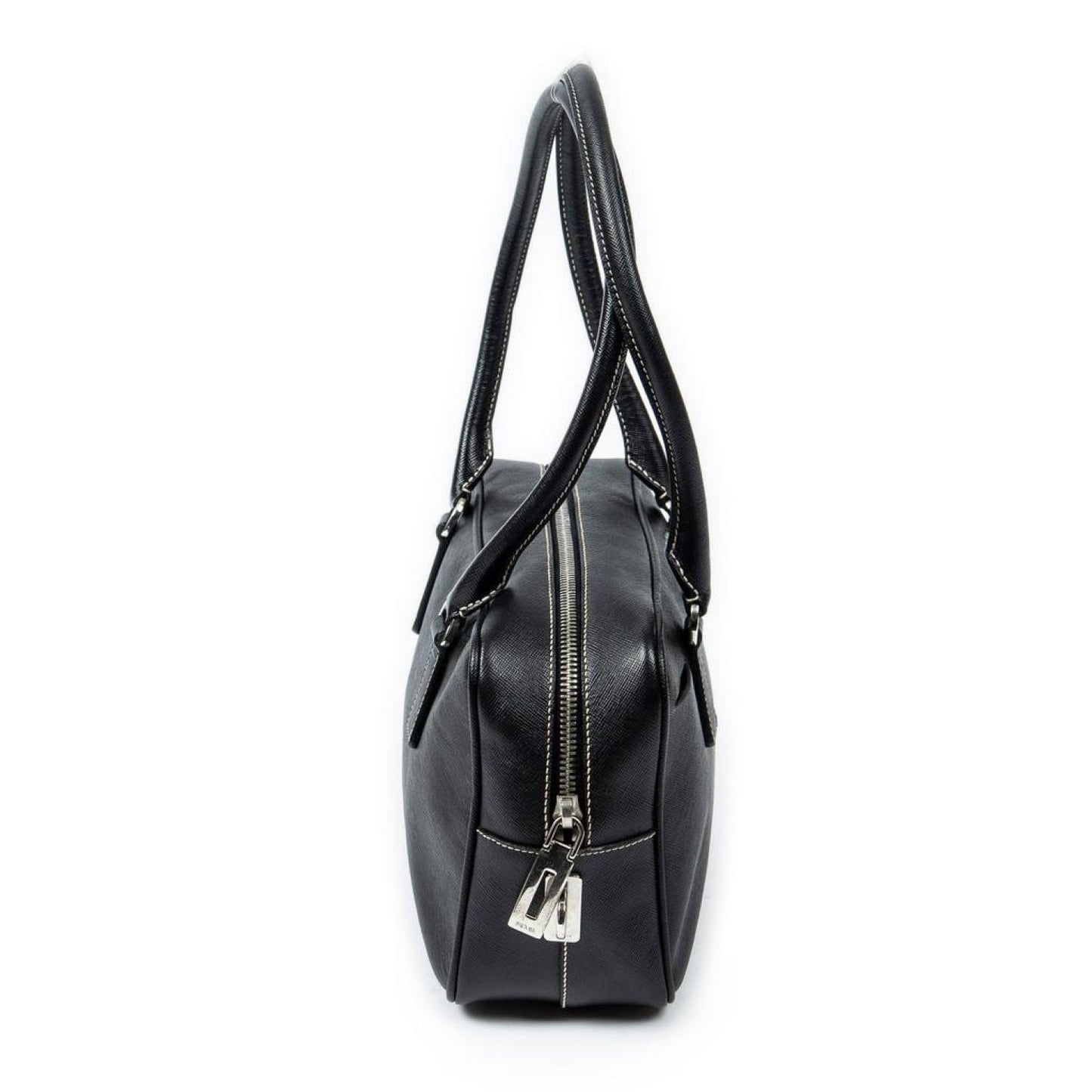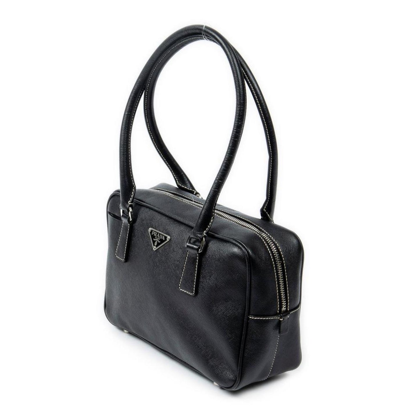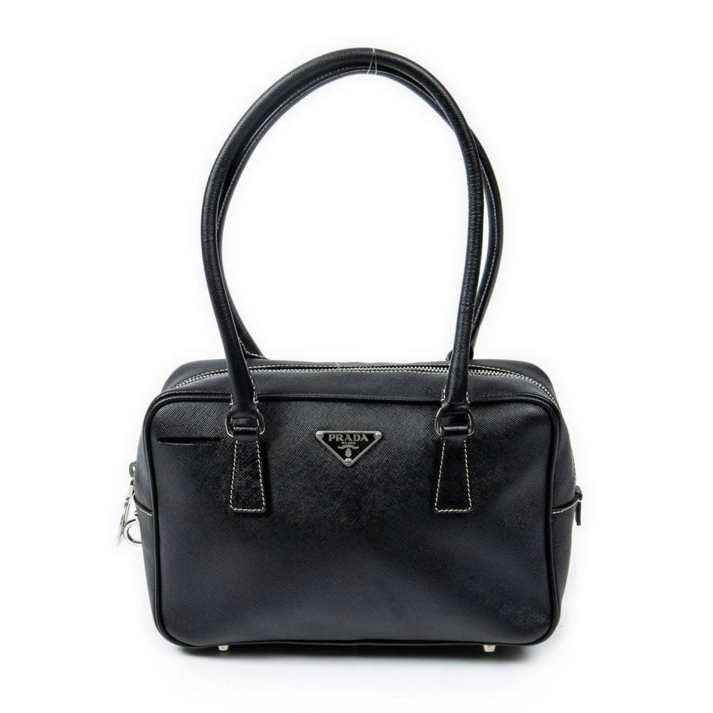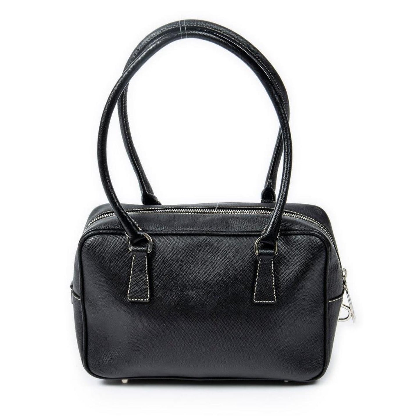 Prada Shoulder Bag in Black Saffiano Leather and Silver hardware. Dimensions - 24*15*9cm. Serial number - BL0189. Inclusions - Keys in clochette, Cadenas, Card.