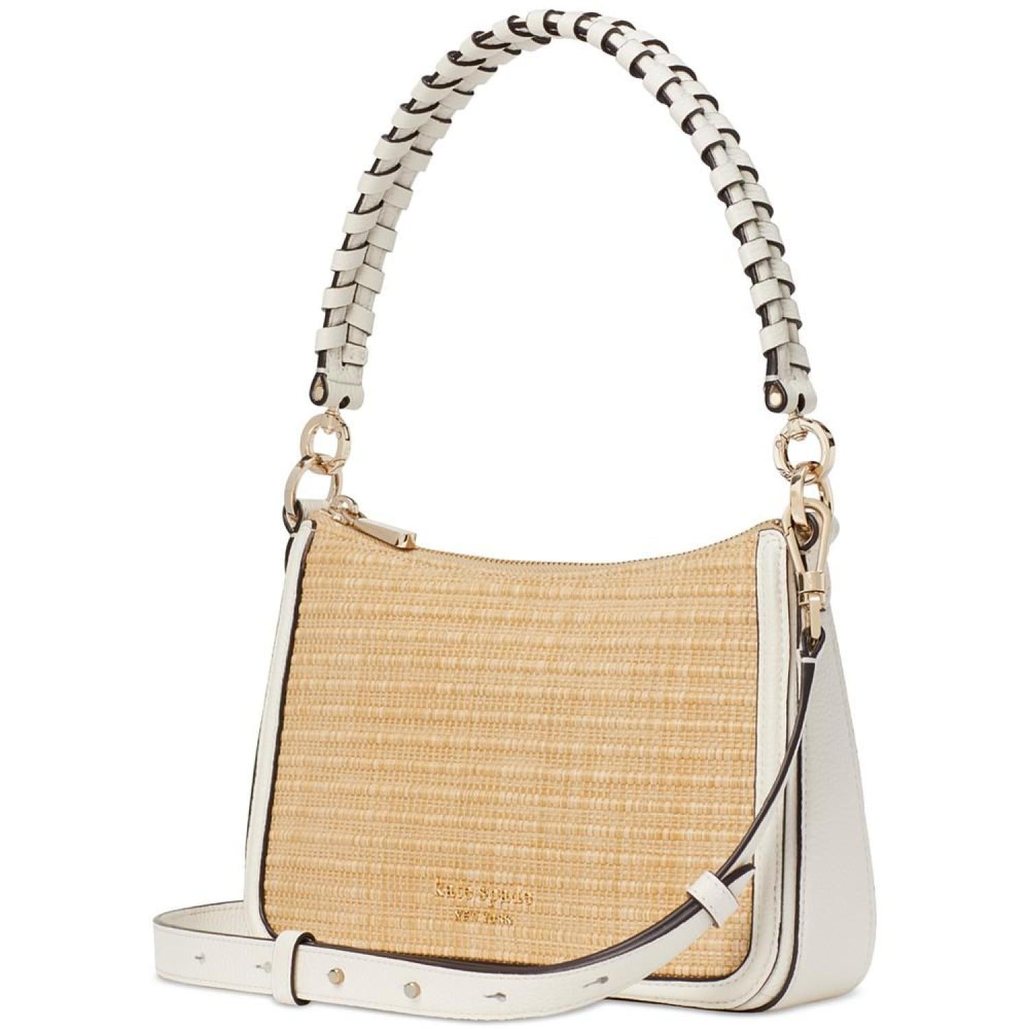 • Feeling indecisive? This woven straw style handbag by kate spade new york has you covered. Adjust the straps to wear it as a crossbody, shoulder bag or anything in between.